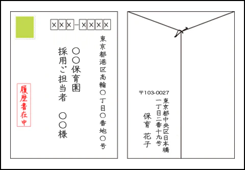 - 履歴書を入れる向き・・・履歴書の左側(証明写真と名前の面)が一番上になるように。