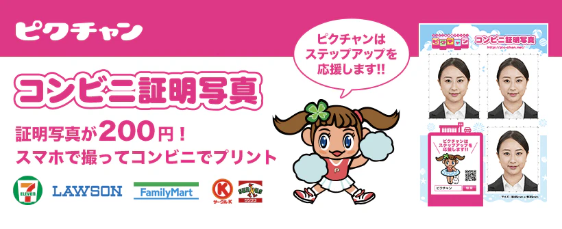 急な面接で履歴書の写真がない、近くに証明写真機がない方には、スマホで撮影してコンビニで印刷できる「ピクチャン」がオススメ!