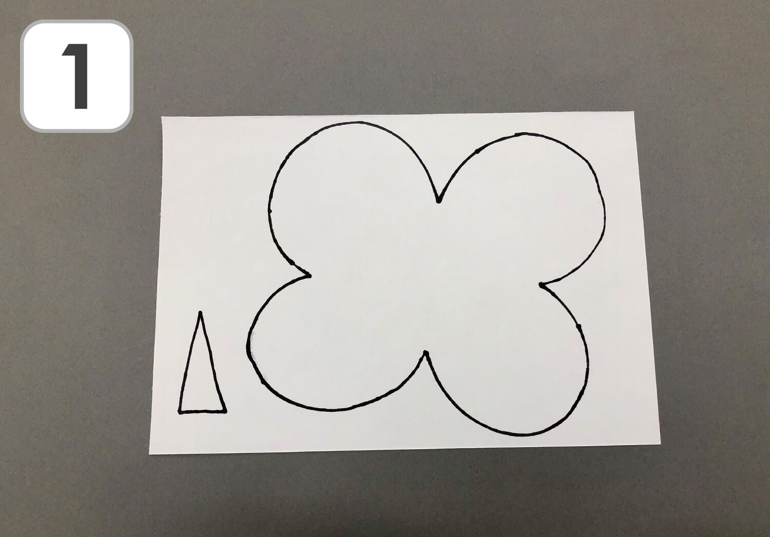 ① 画用紙に四つ葉のクローバーの形を描いておきます