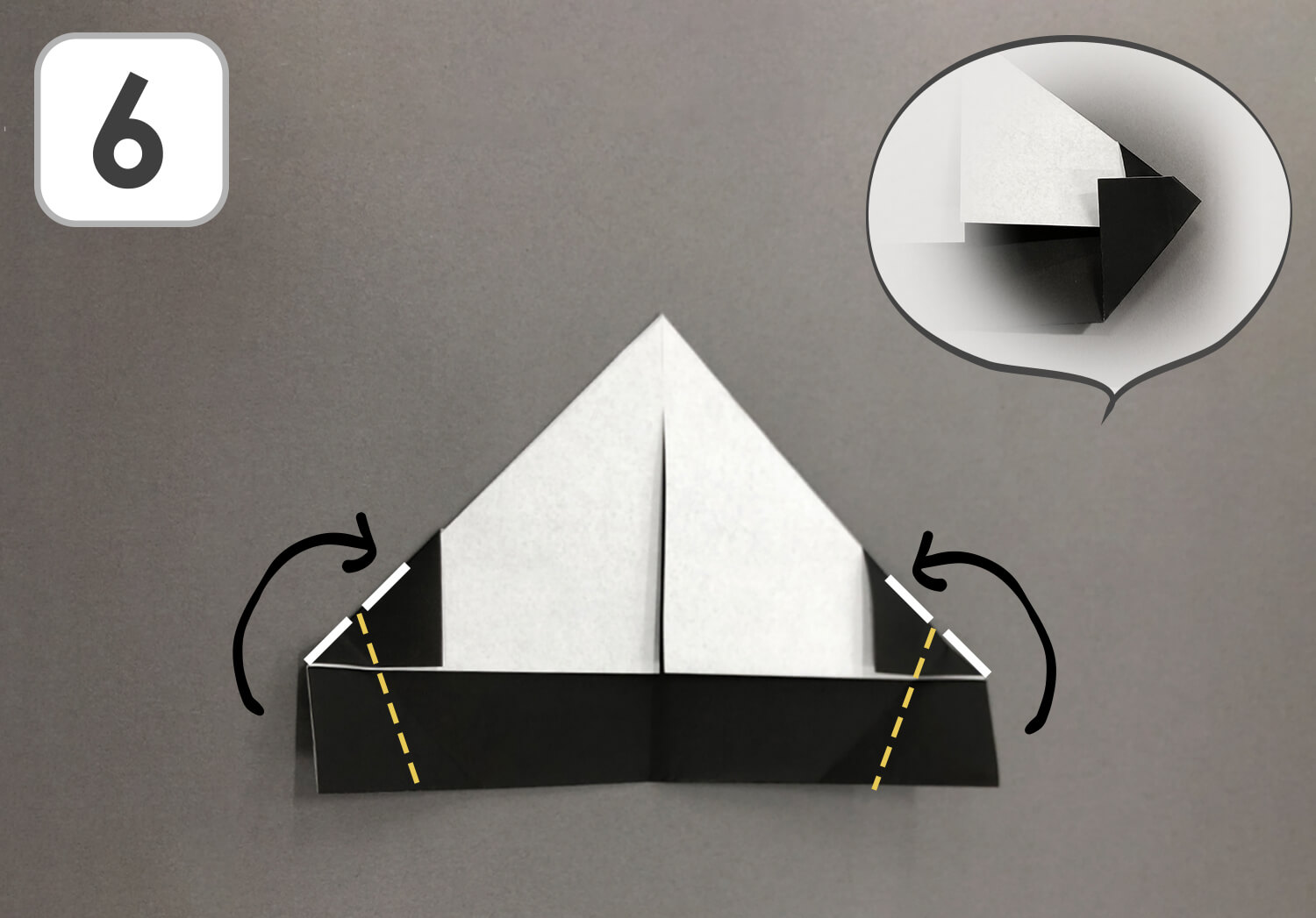 ⑥ 点線に沿って谷折りします。