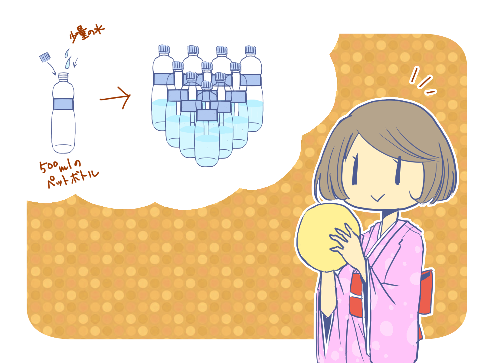 500mlのペットボトルに少量の水を入れ、しっかり蓋をします。