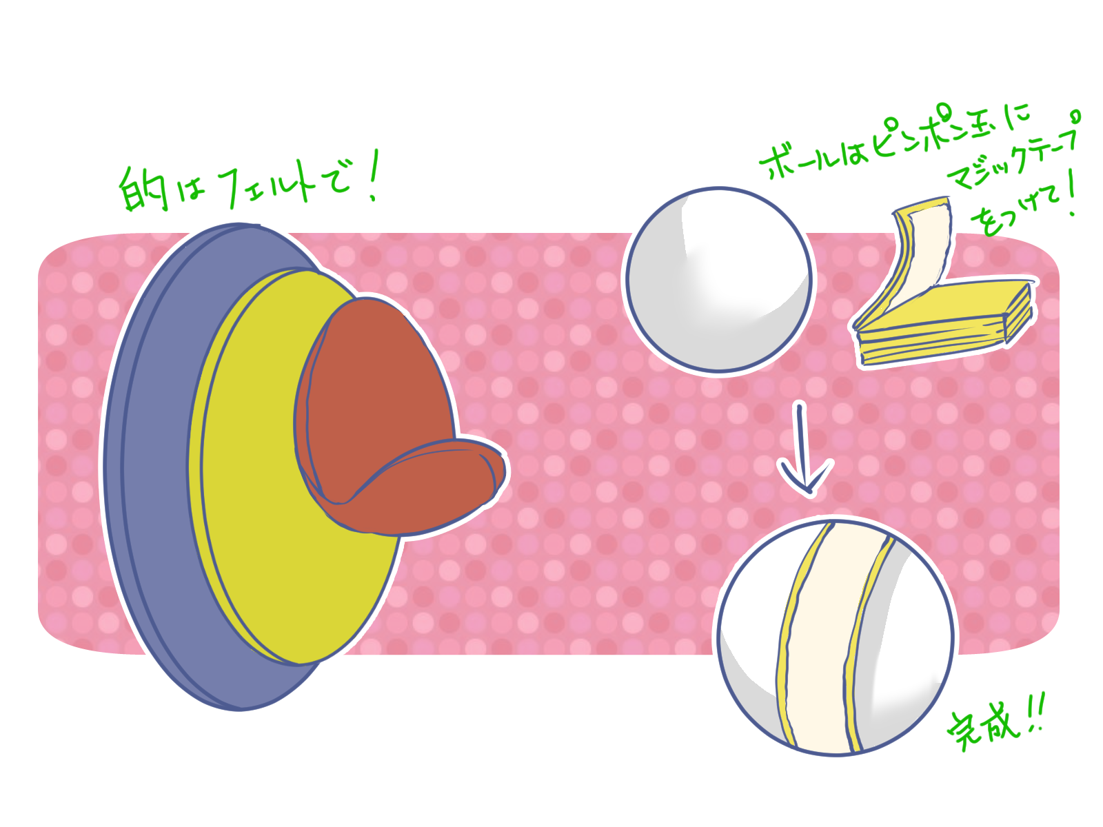 ピンポン球にマジックテープを巻きつけたものを的に投げて点数を競います。