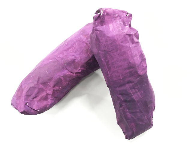 - 1枚をクシャクシャと丸め、さつまいもの形にします。
