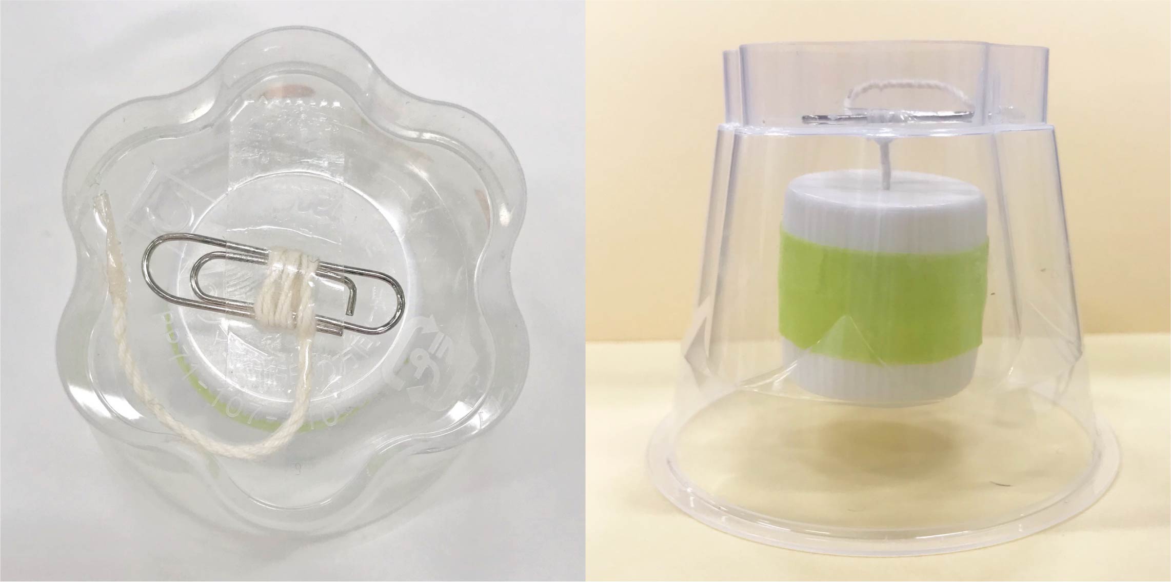 ペットボトルのフタを2つ使って作ります。