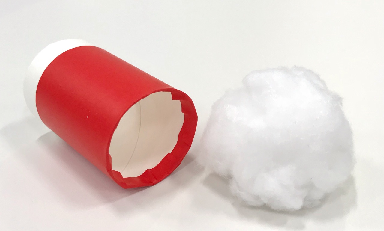 ペットボトルの中にフワフワのわたを入れたゆきだるま。
