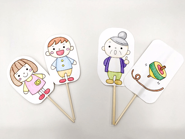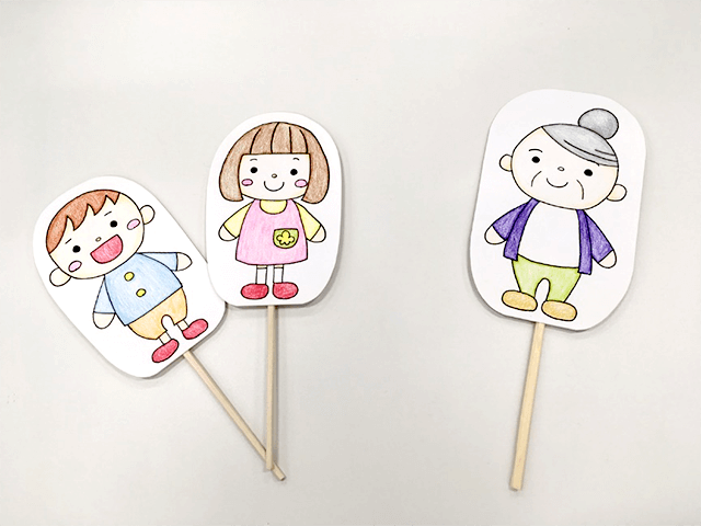 セリフに合わせてペープサートを左右にユラユラ動かして、表現にメリハリをつけてみてください!