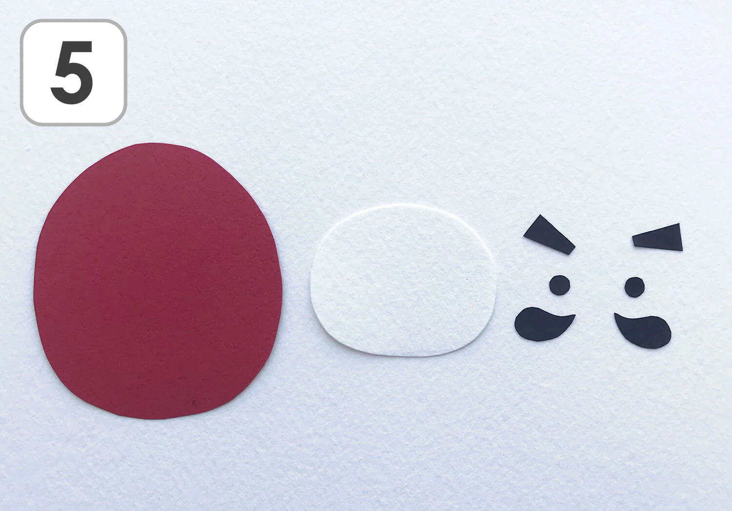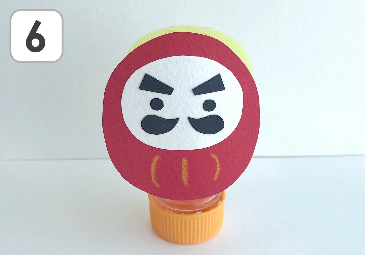 ⑤ 赤、白、黒の画用紙を使ってダルマを作ります。