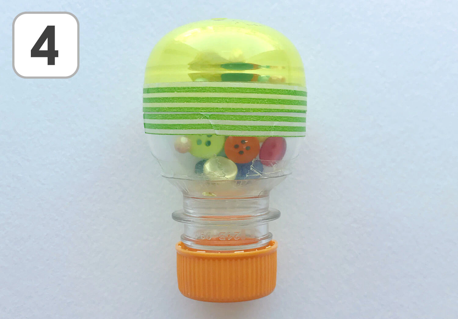 ④ 2で作ったカプセルを乗せてセロハンテープで貼り付けます。