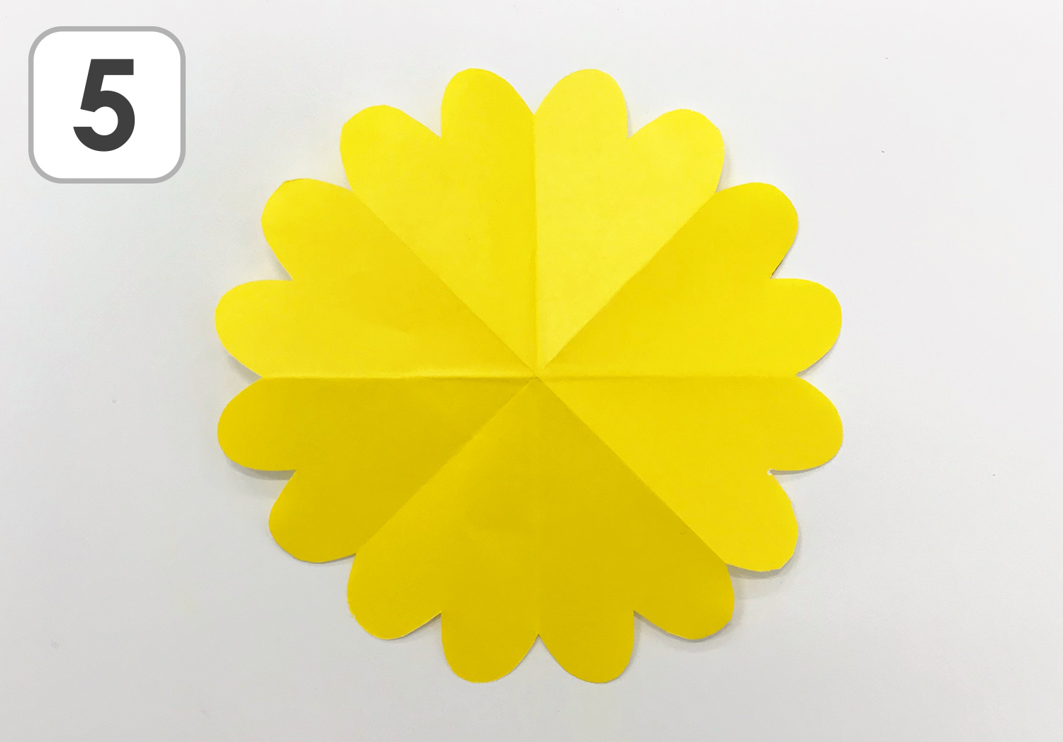 ⑤ 広げるとお花部分が出来上がりです。