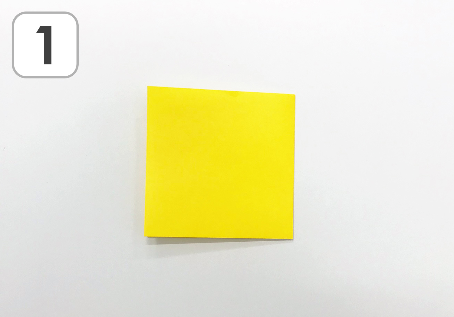 ① 黄色のおりがみを四角に2回折ります。
