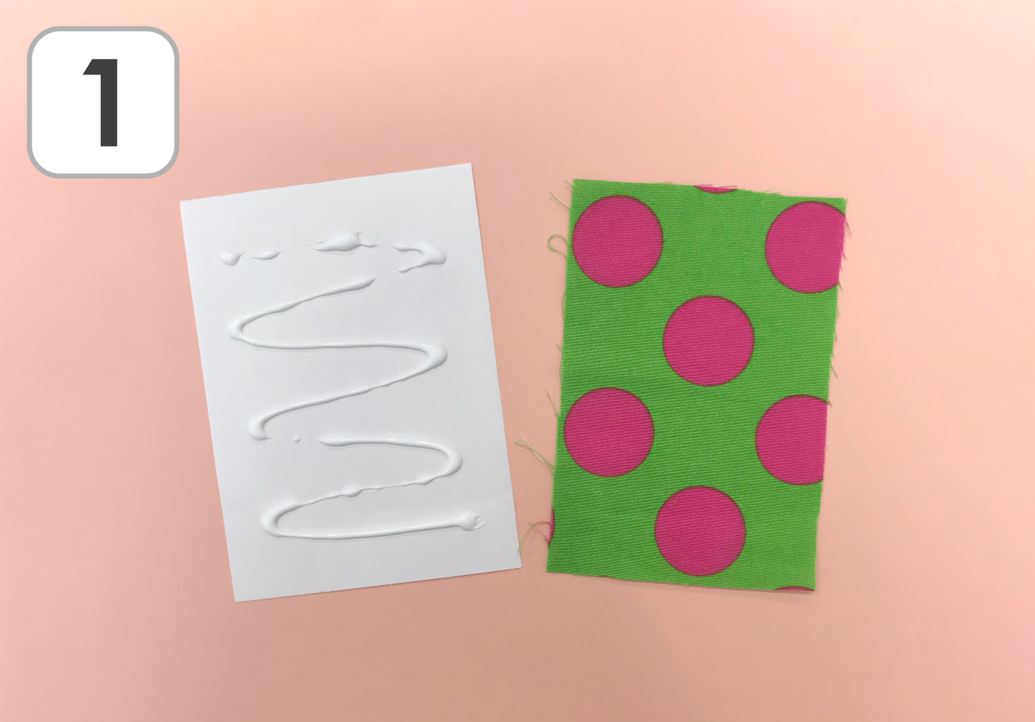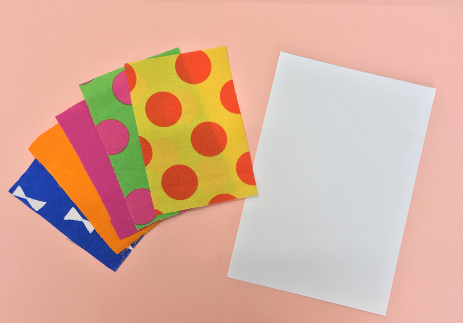 ① 画用紙にボンドを塗り、はぎれを貼り付けます。