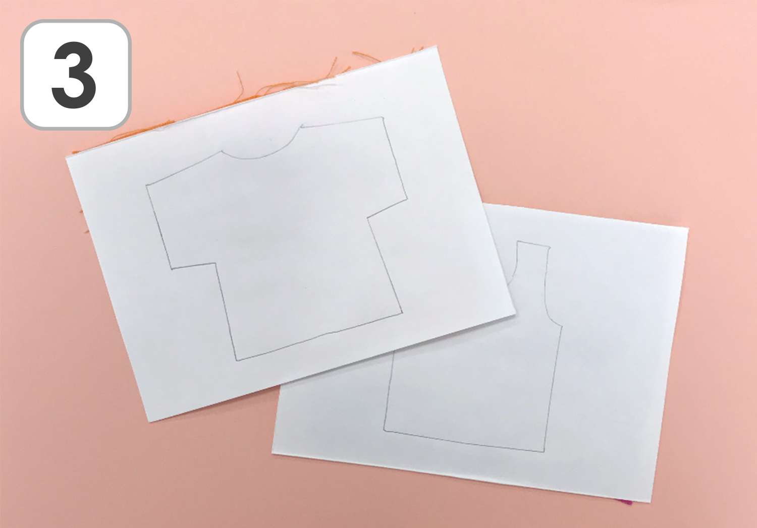 ③ 画用紙の面に、えんぴつで好きな服の形を描きます。