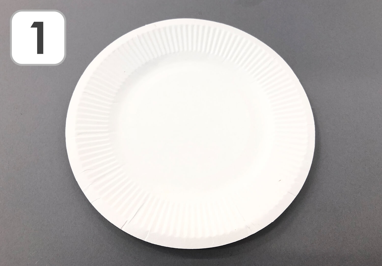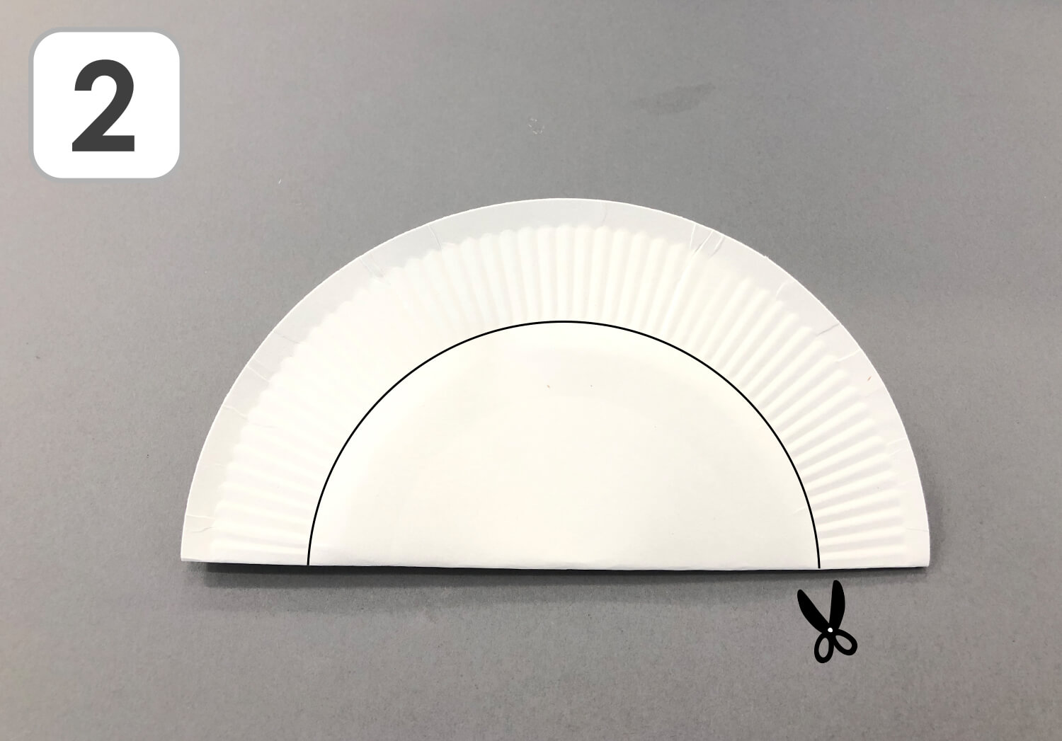 ① まずは、紙皿を半分に折ります。