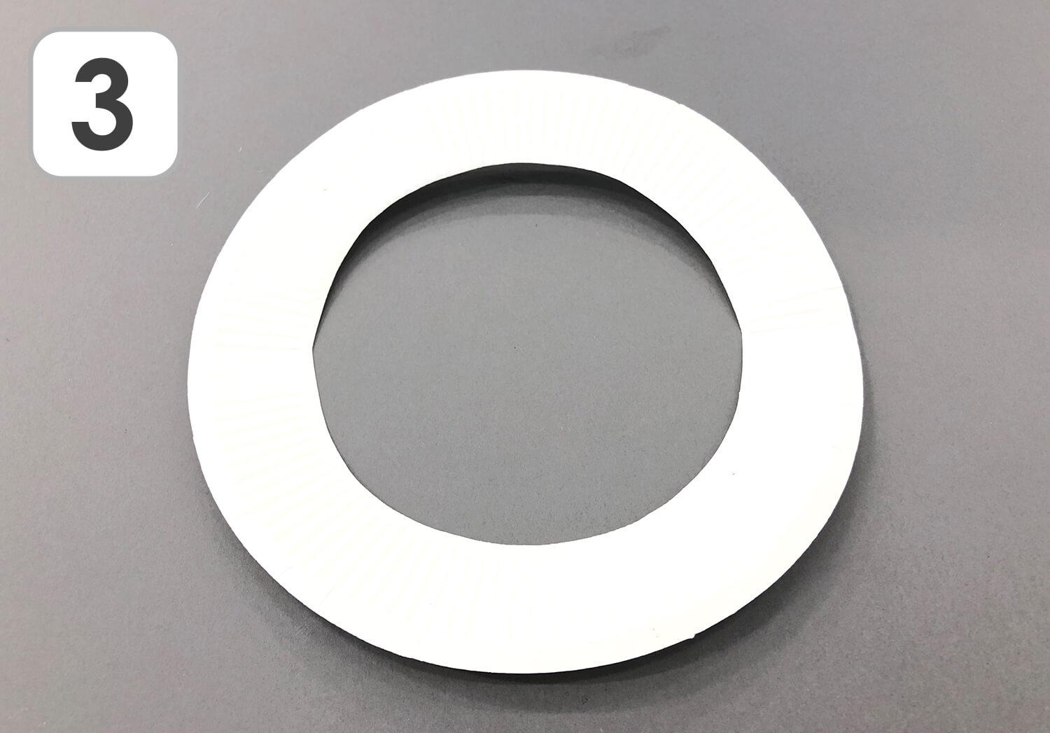 ③ 切り抜いて広げると、ドーナッツのようになります。