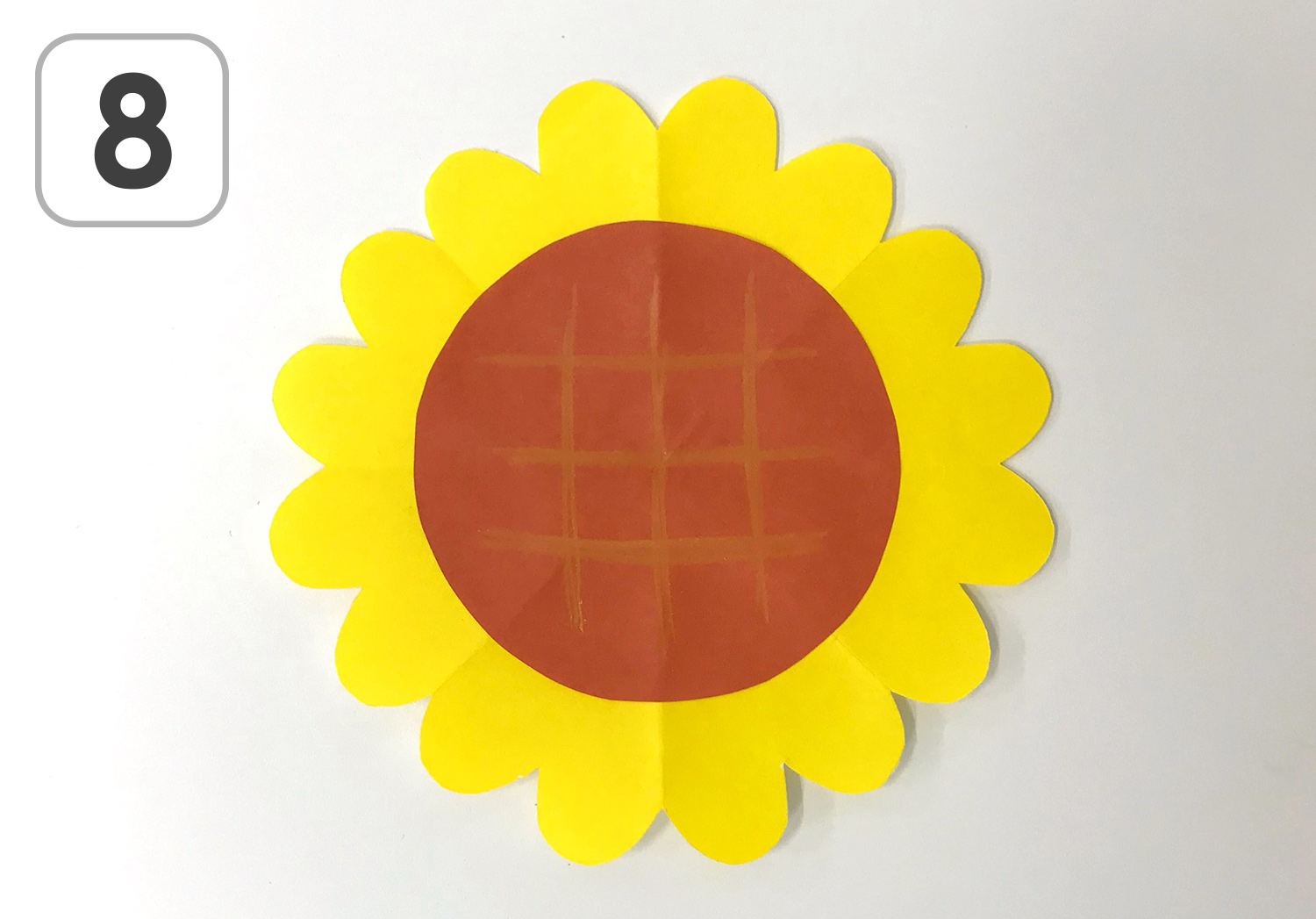 ⑧ 色鉛筆で種の部分に自由に装飾したらひまわりの出来上がり!