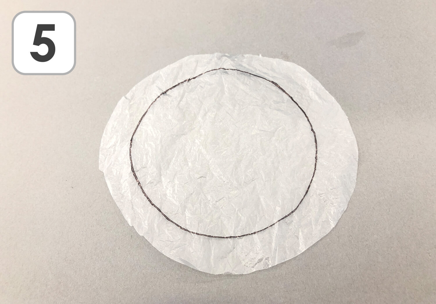 ④ 切り抜いた円の大きさの丸を描き、その円より大きめに周りを切っていきます。