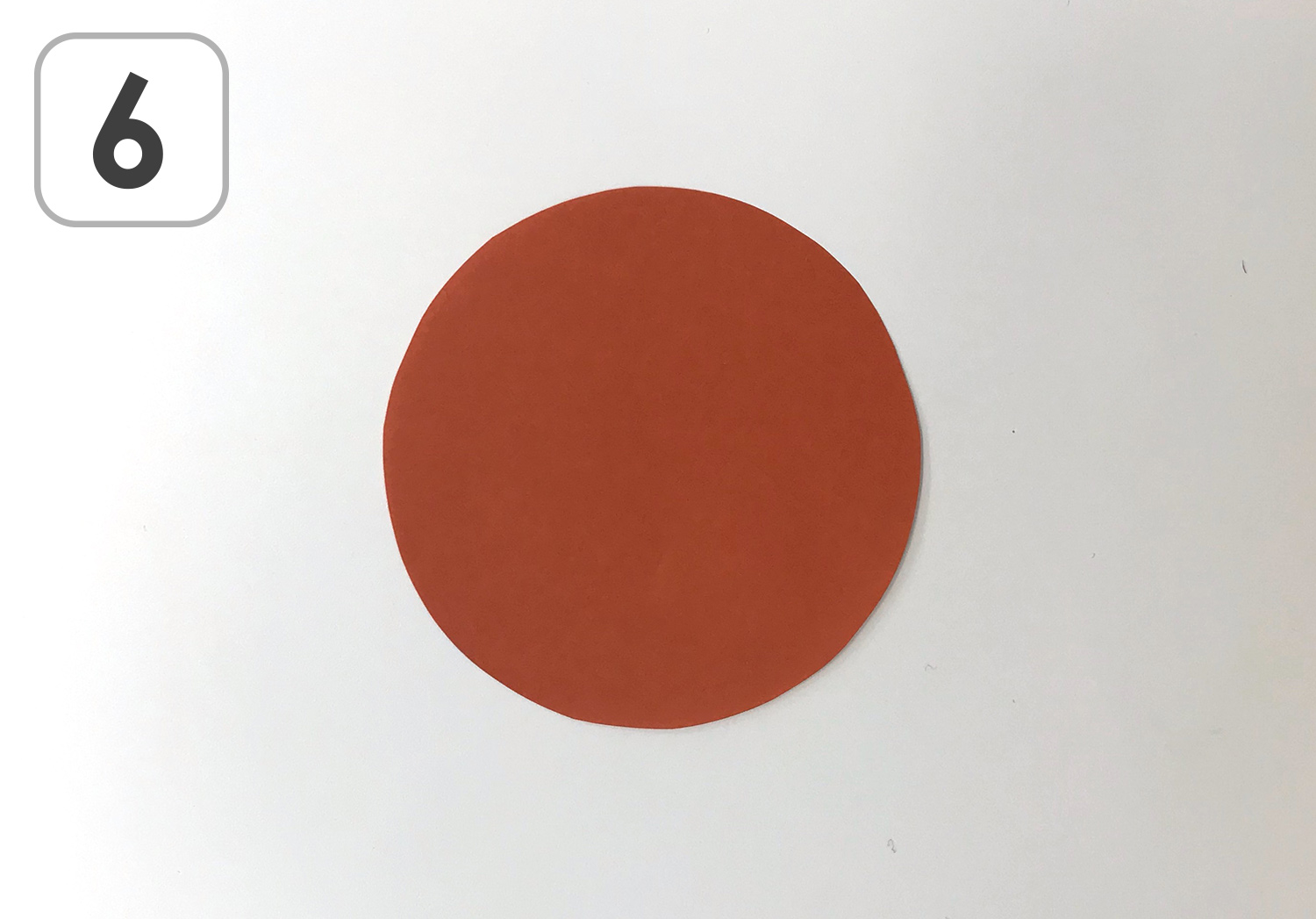 ⑥ 次に茶色のおりがみを使います。はさみで丸く切ります。
