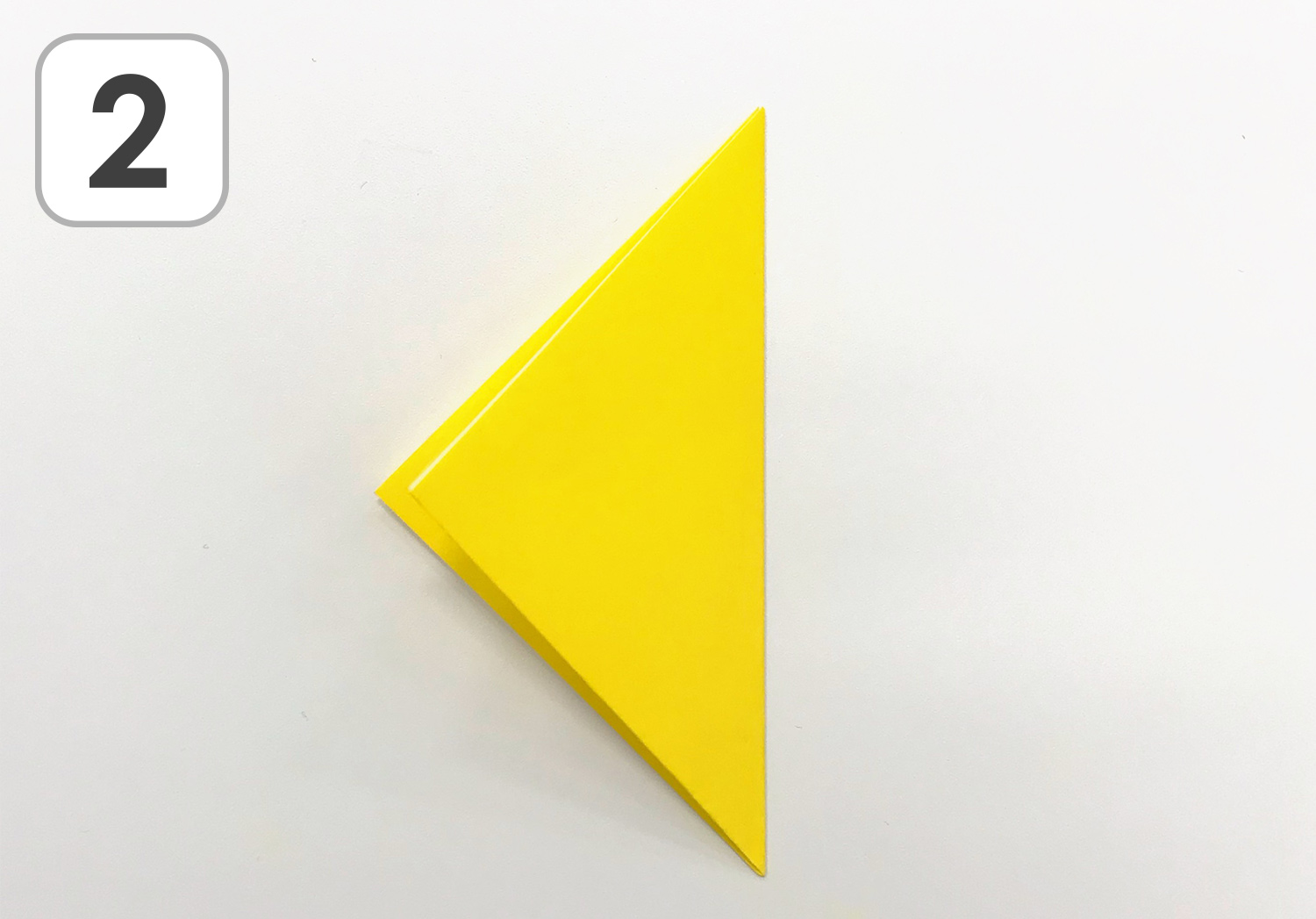 ② 半分に折り、三角形を作ります。