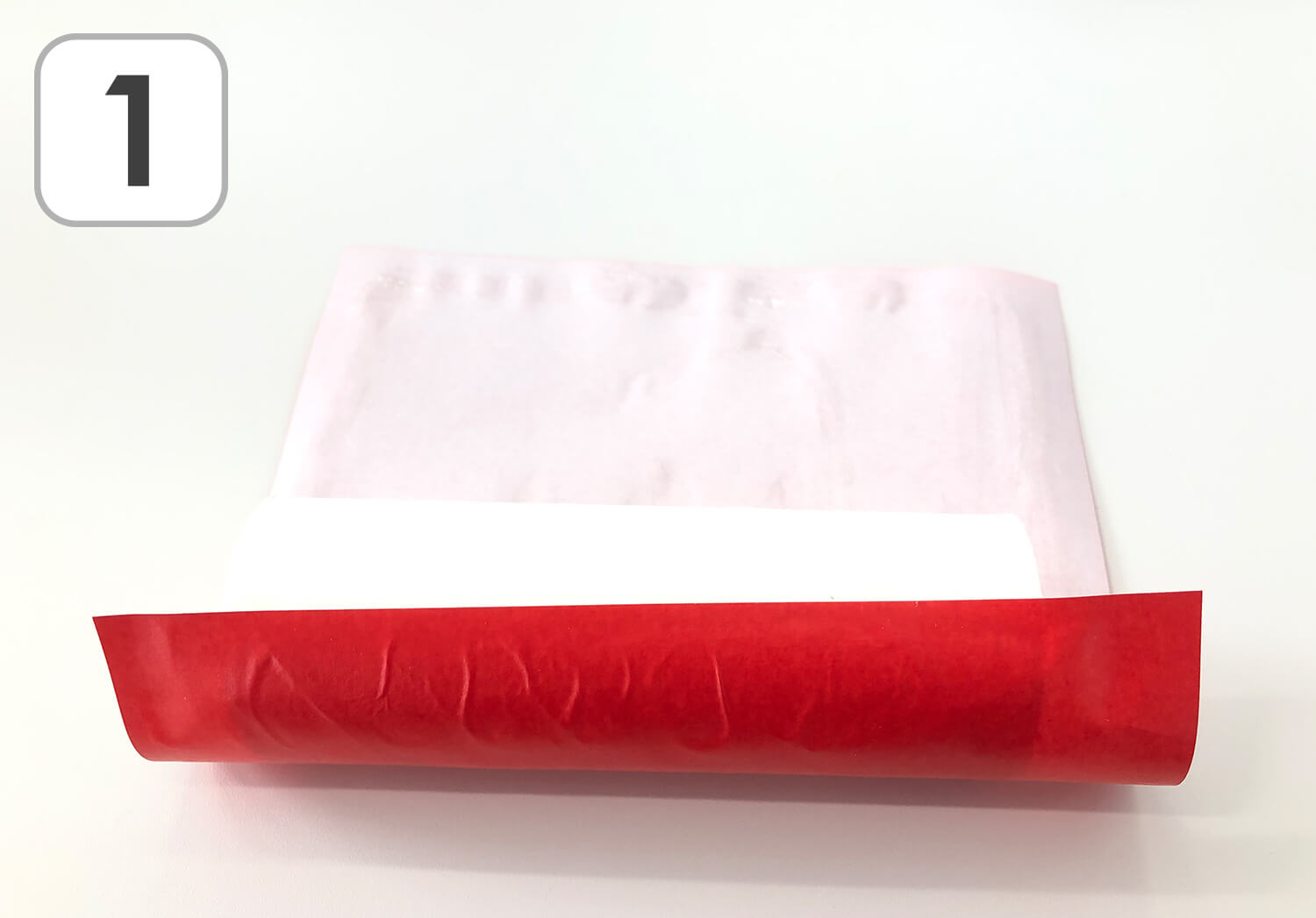 ① 四角を半分に折ります。