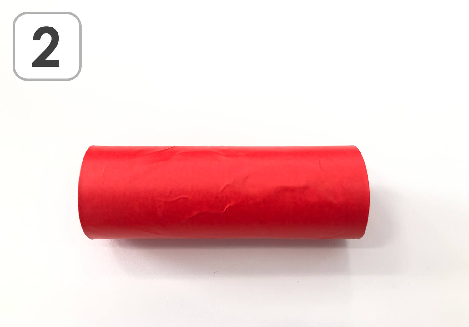 ② おりがみを巻き付けたら、トイレットペーパーの芯からはみ出した部分をトイレットペーパーの芯の中に折り込みましょう。