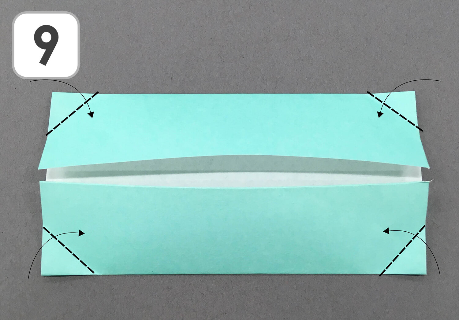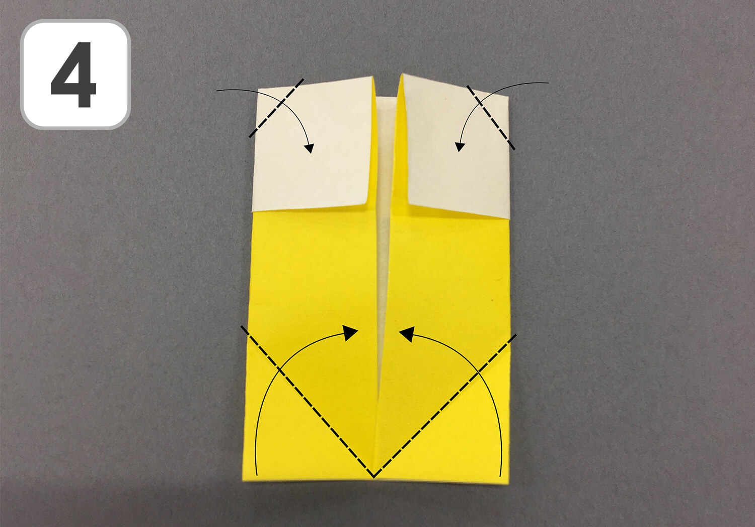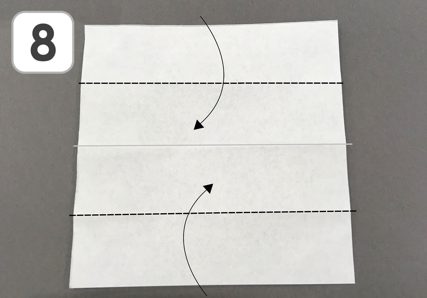 次に、真ん中の折り線に合わせて上と下から折りましょう。