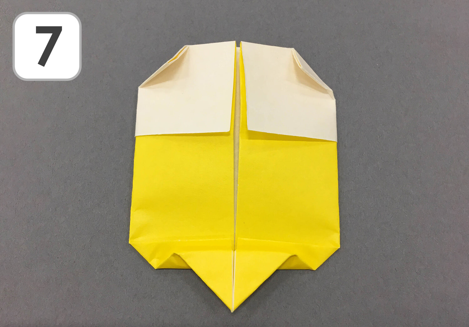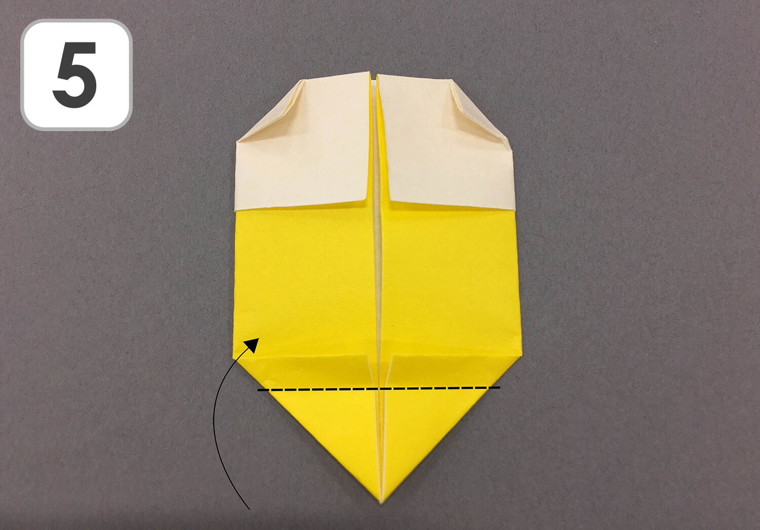 ⑤写真のようになったら、おしりの針の部分を段折りで作っていきます。