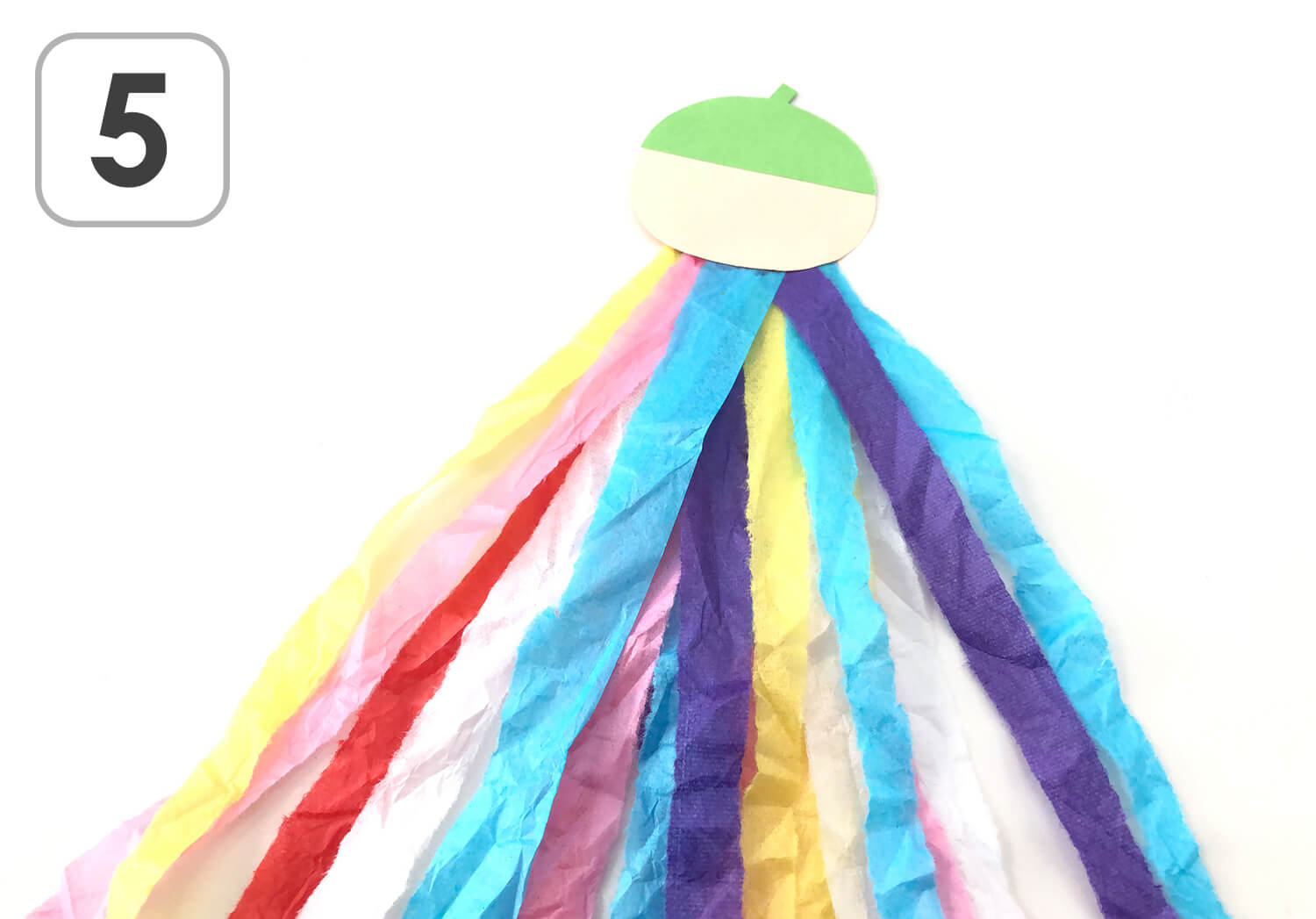 お花紙を細長くちぎるだけでなく短めにちぎったり、土台に貼る時にバラバラの向きに貼ってみたりと、アレンジを加えてみるのも◎。それぞれ個性のあるみのむしに仕上がりますよ!