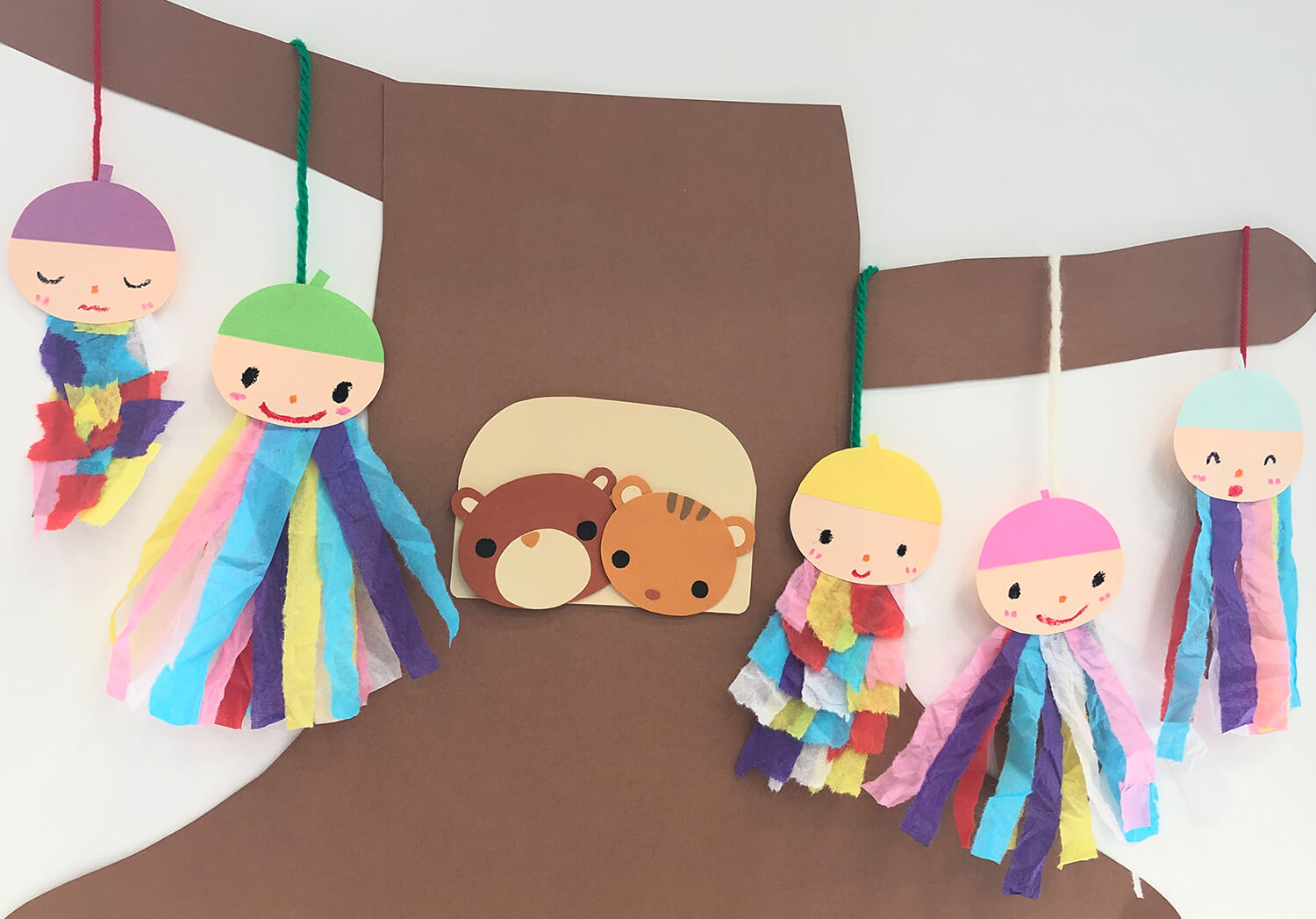 壁いっぱいに大きな木を作り、クラスみんなの個性あふれる【みのむし】を飾ってみてはどうですか??