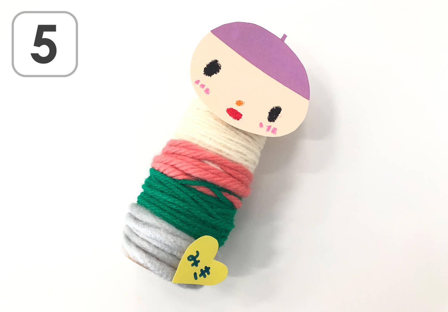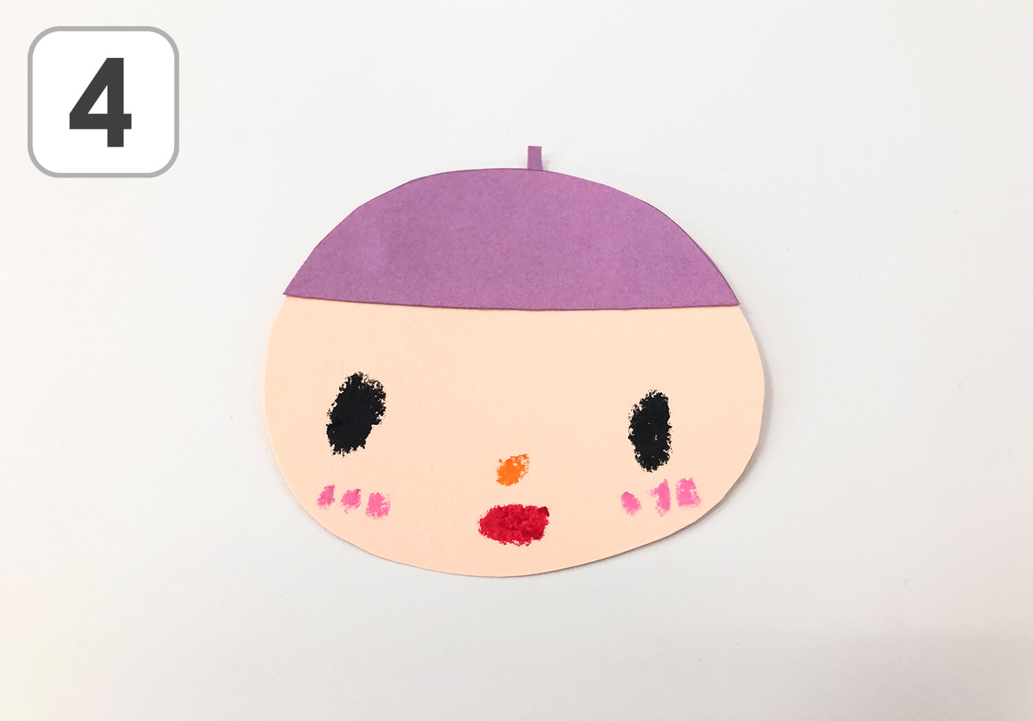 ④ 顔を描いて顔と帽子はのりでくっつけます。