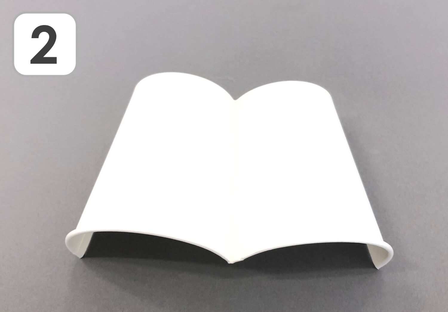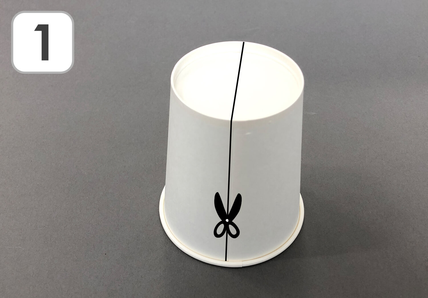 ① 紙コップのつなぎ目に沿ってハサミで切り込みを入れます。