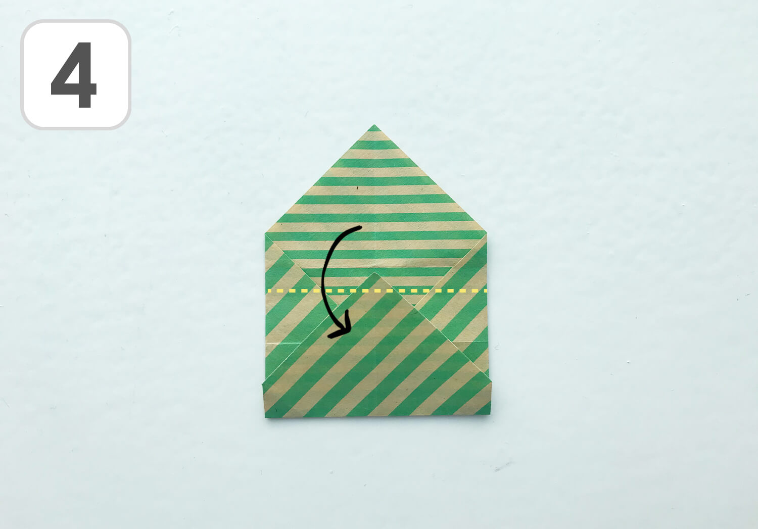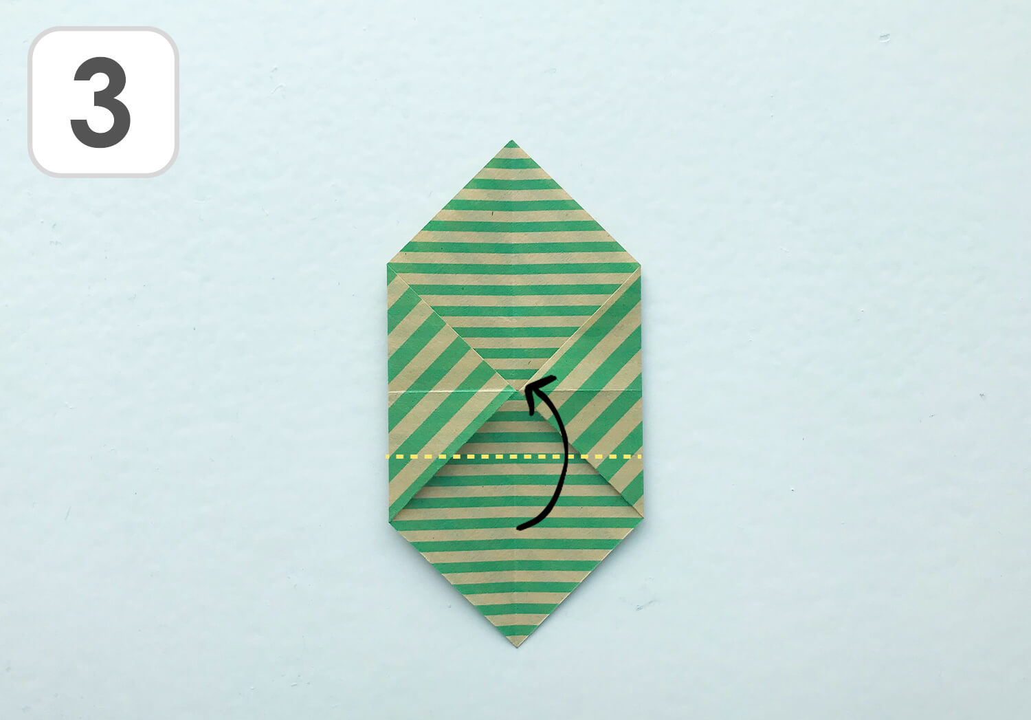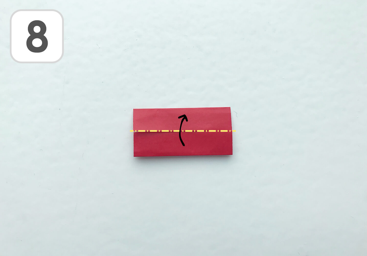 1/4のおりがみを半分に折り、中央でさらに半分に折ります。