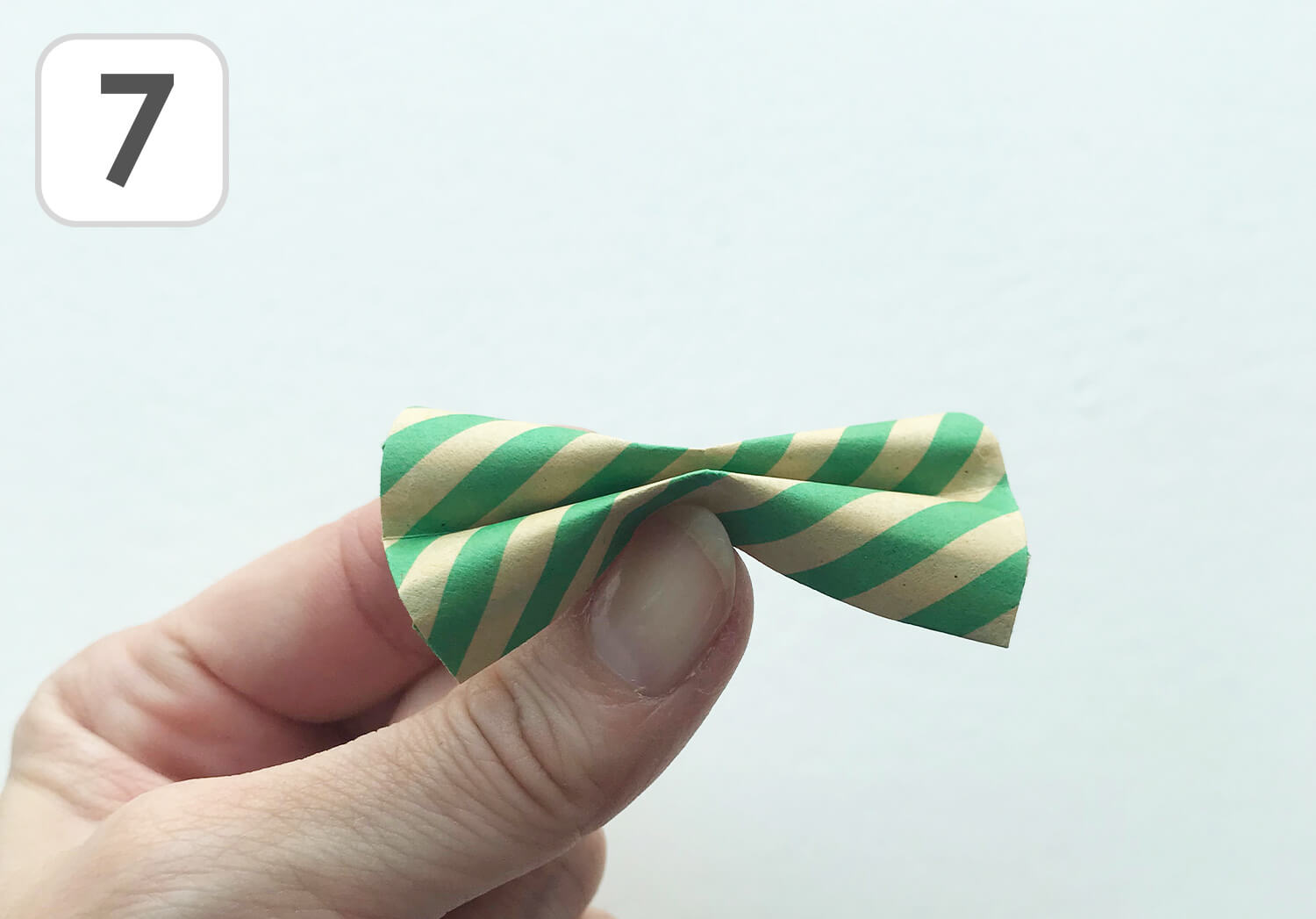 このとき、端まできっちりと折らずに中央だけをつまむようにします。