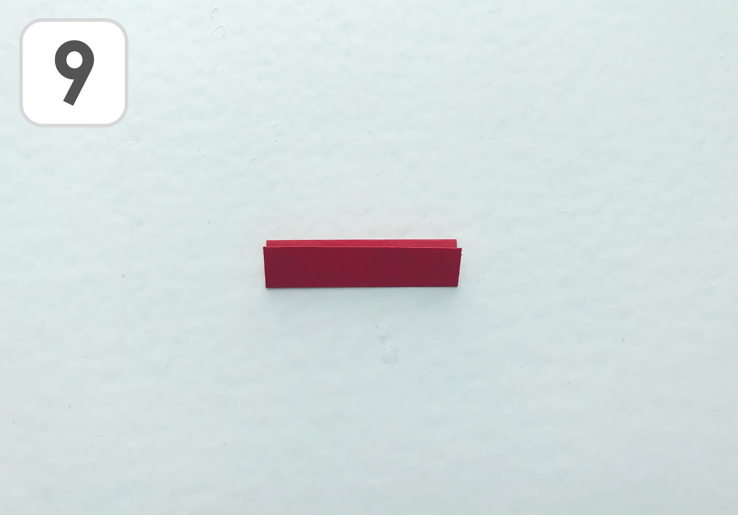 ⑨ 細長い四角ができたら、7で作った本体の中央に巻きつけてセロハンテープで固定します。