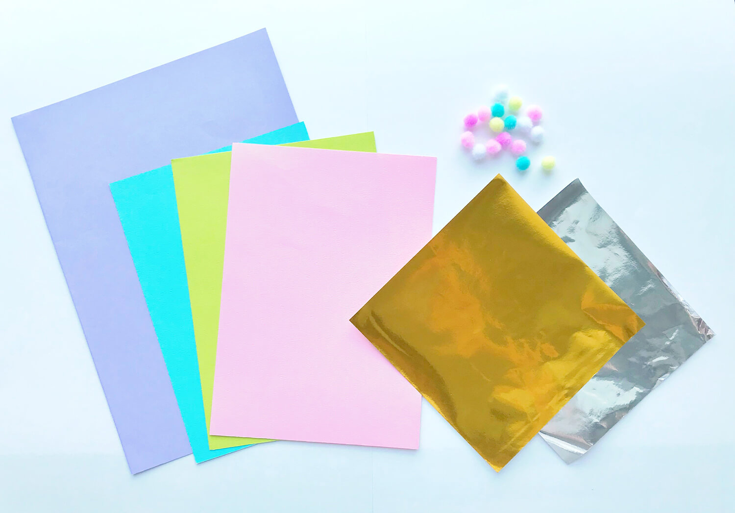 色画用紙・おりがみ・飾り用パーツ(ポンポンなど)・はさみ・カッター・のり