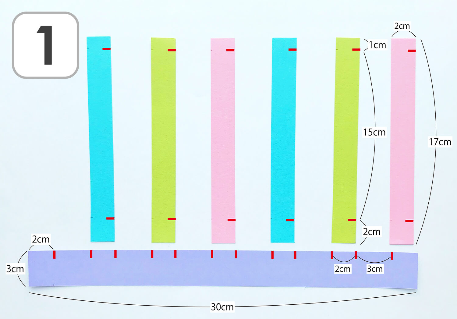 ■縦長のパーツ(3色)…17cm×2cmを6枚