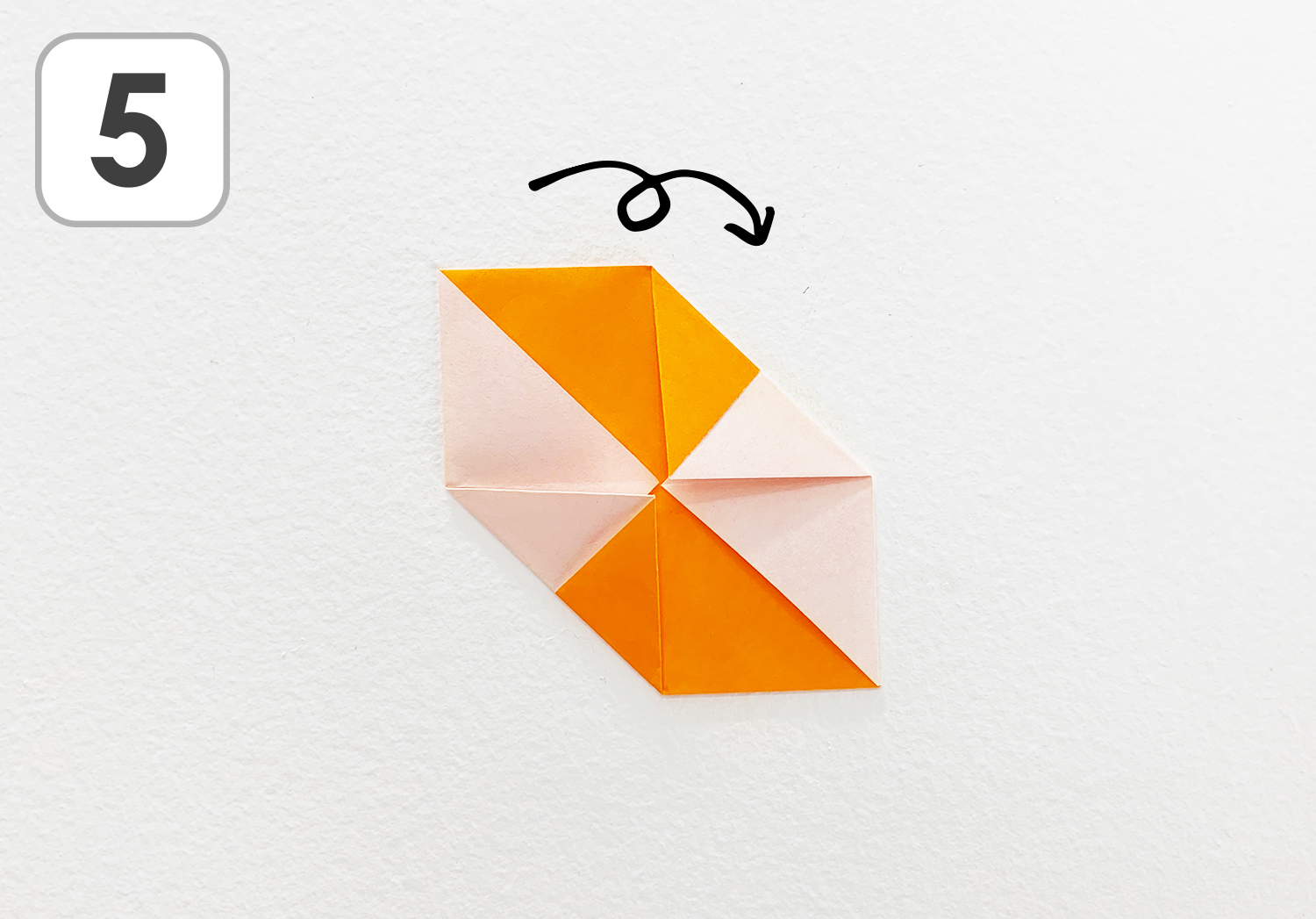 ⑤このような形になったら裏を向けます。