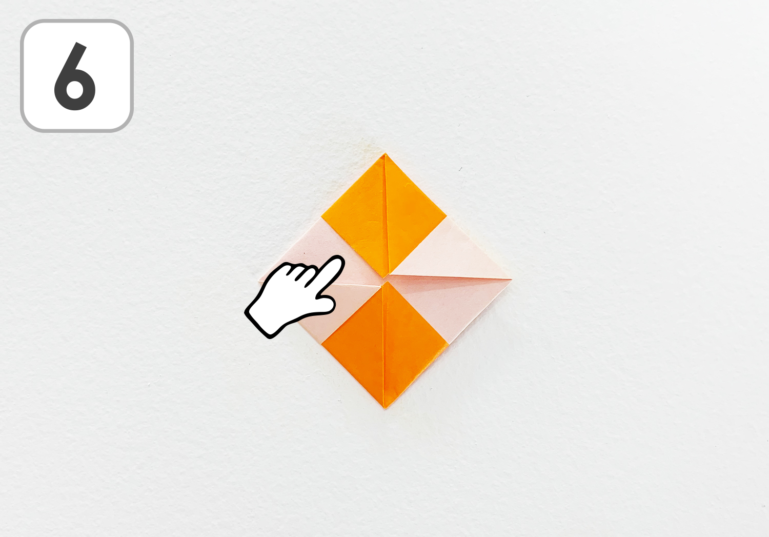 ⑥残りの角も裏の中心に向かって正方形の形にして、裏返します。