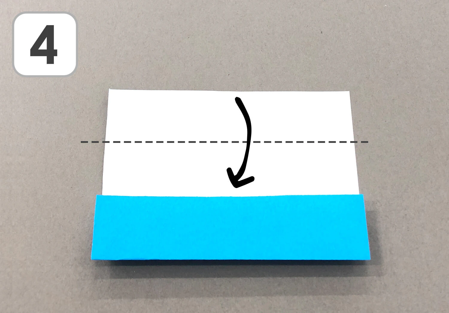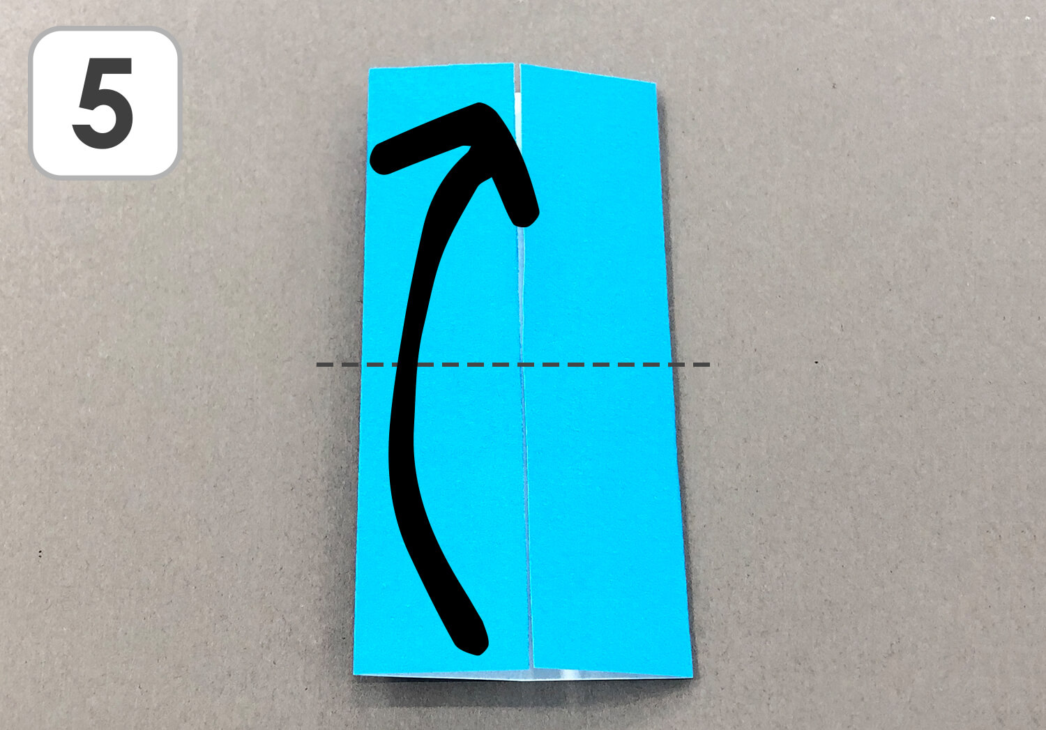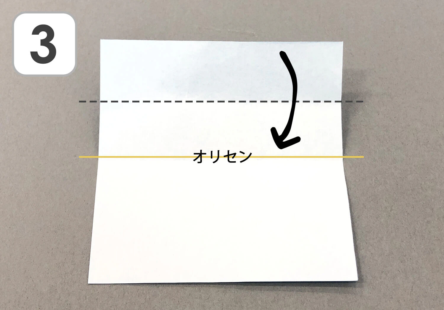 ⑤ ひっくり返したら、点線に沿って三角に折りオリセンを付けたら戻します。