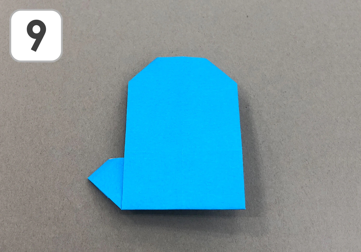 ⑧ 点線に沿って折り、手袋の形を丸みのあるものにしていきます。