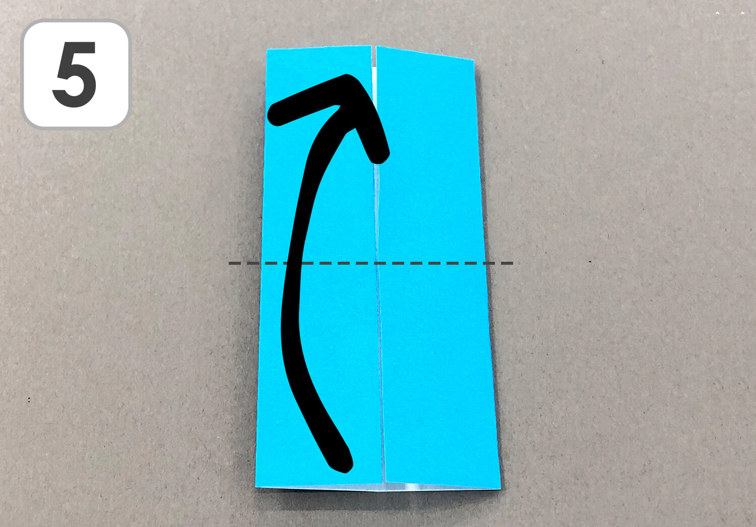 ⑤ 点線に沿って半分に折り,オリセンを付けたら戻します。両開きのドアのようになります。