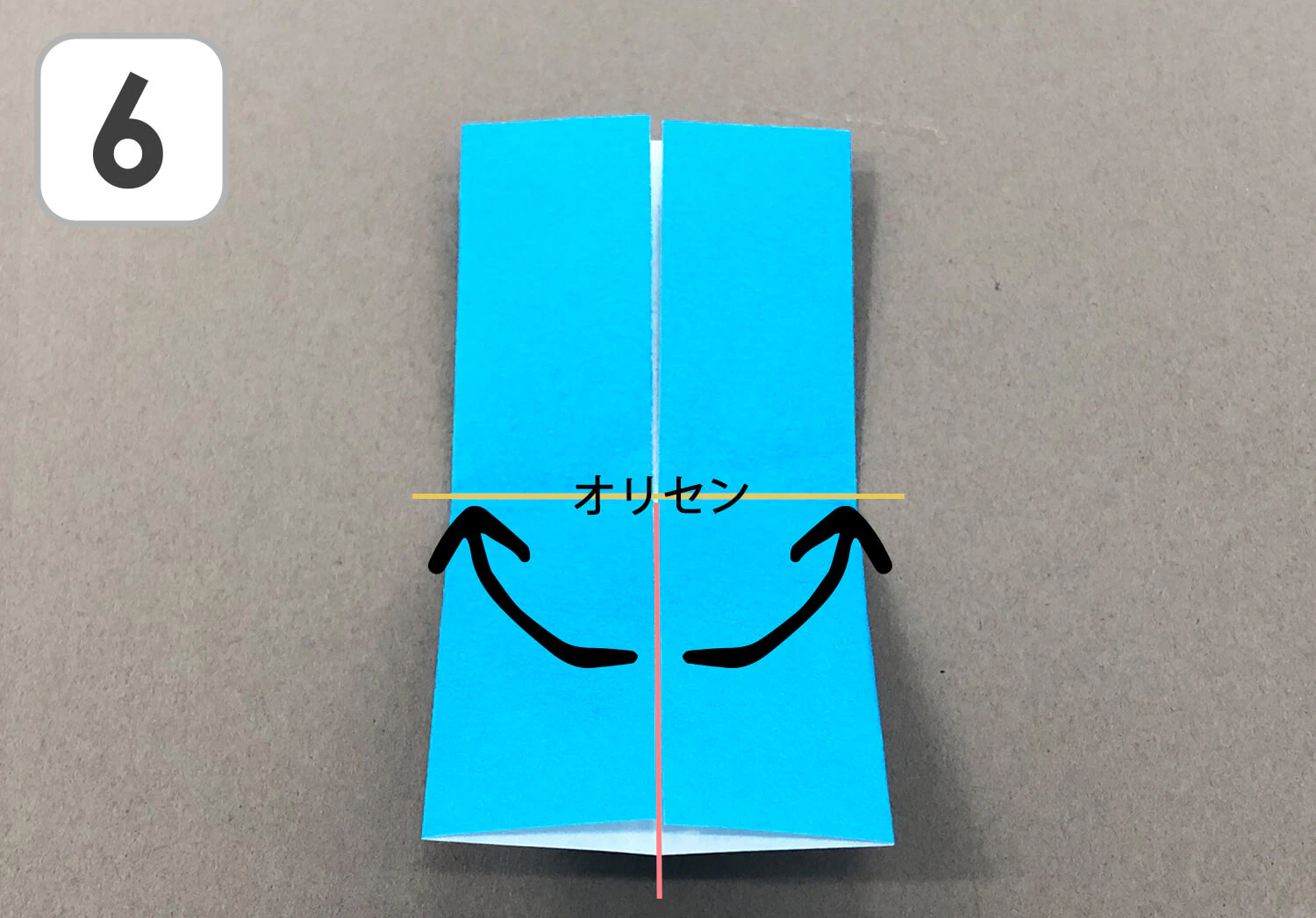 ⑥ 先程付けたオリセンに向かって両サイドを折っていきます。