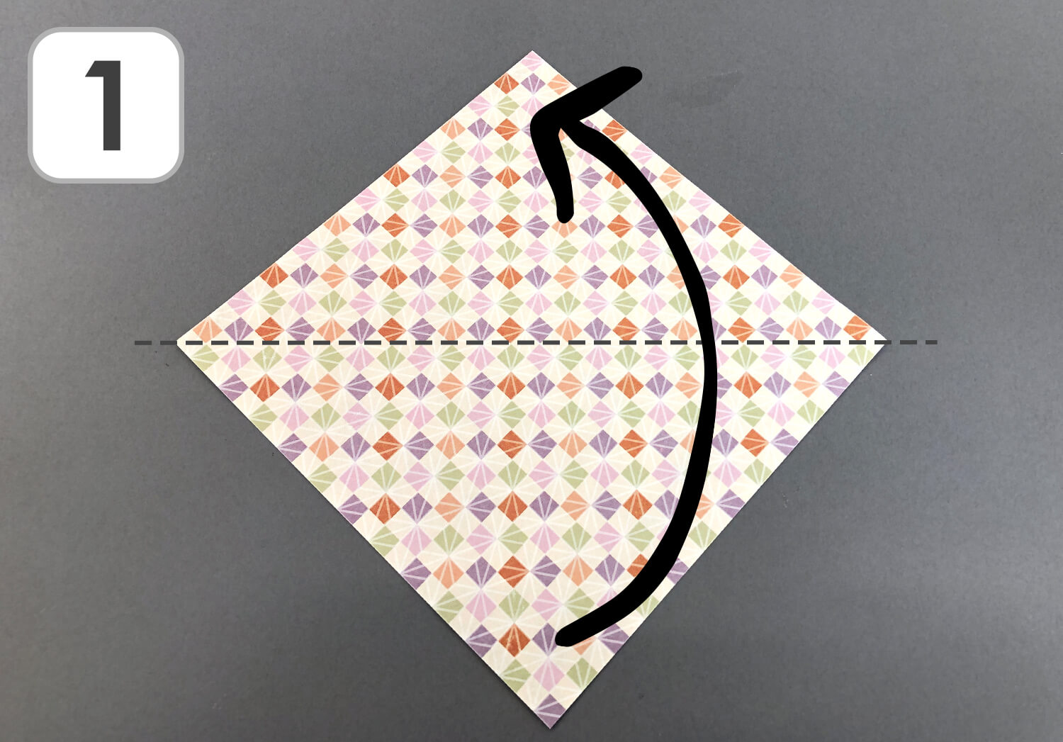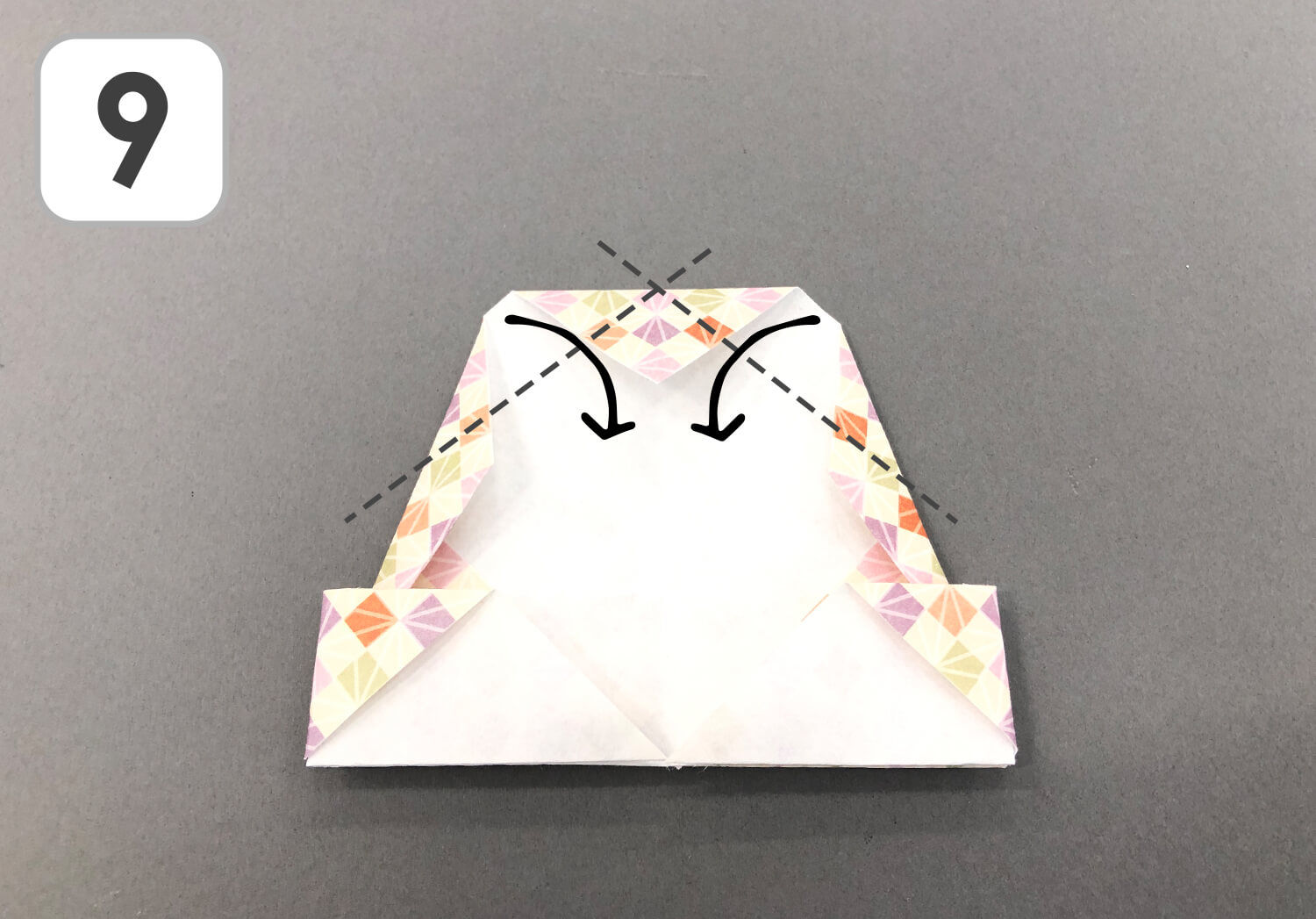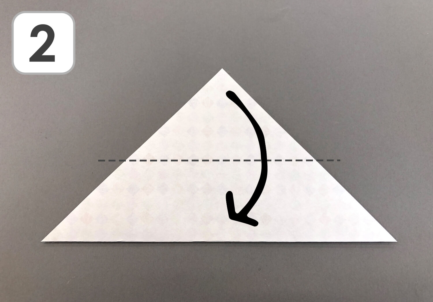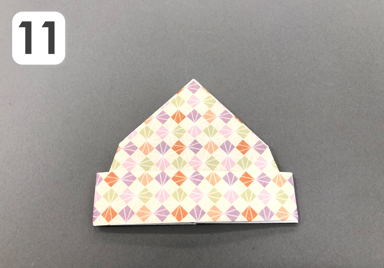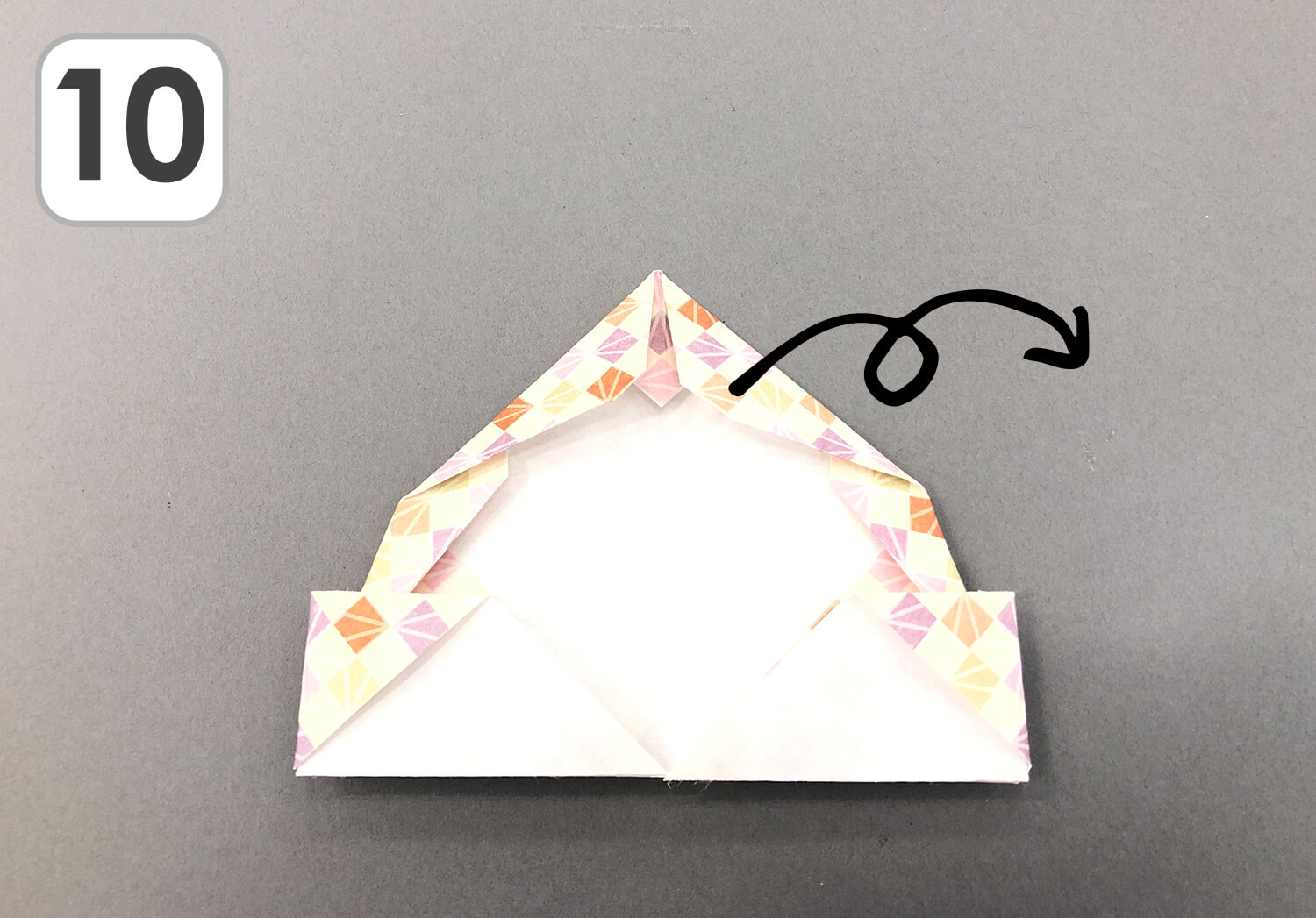 ⑤ ひっくり返したら、点線に沿って三角に折りオリセンを付けたら戻します。