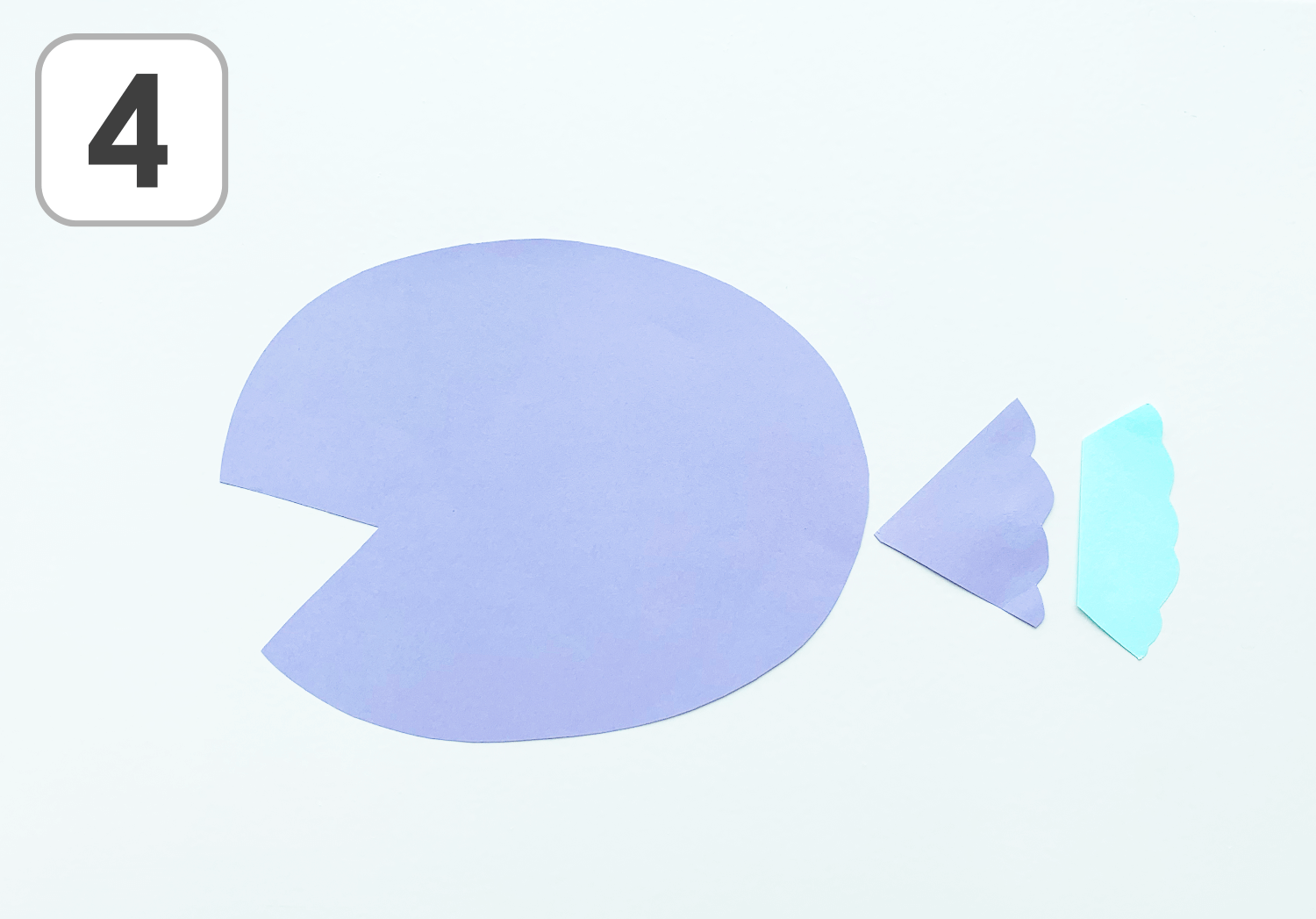④次に、好きな色の画用紙を使って、魚の体としっぽを切ります。