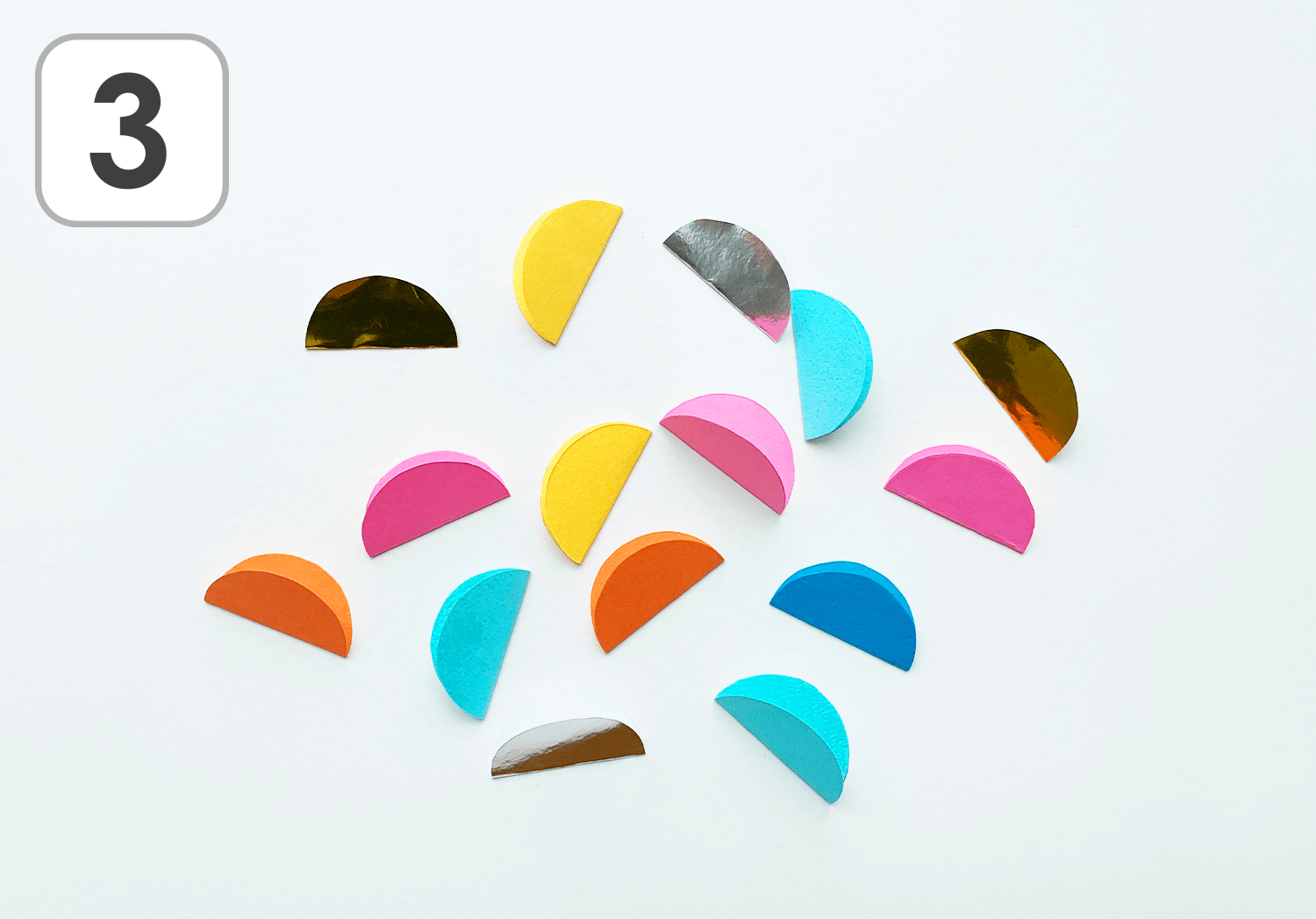 ③2で作った円を半分に折ります。「うろこ」がたくさん出来ました!
