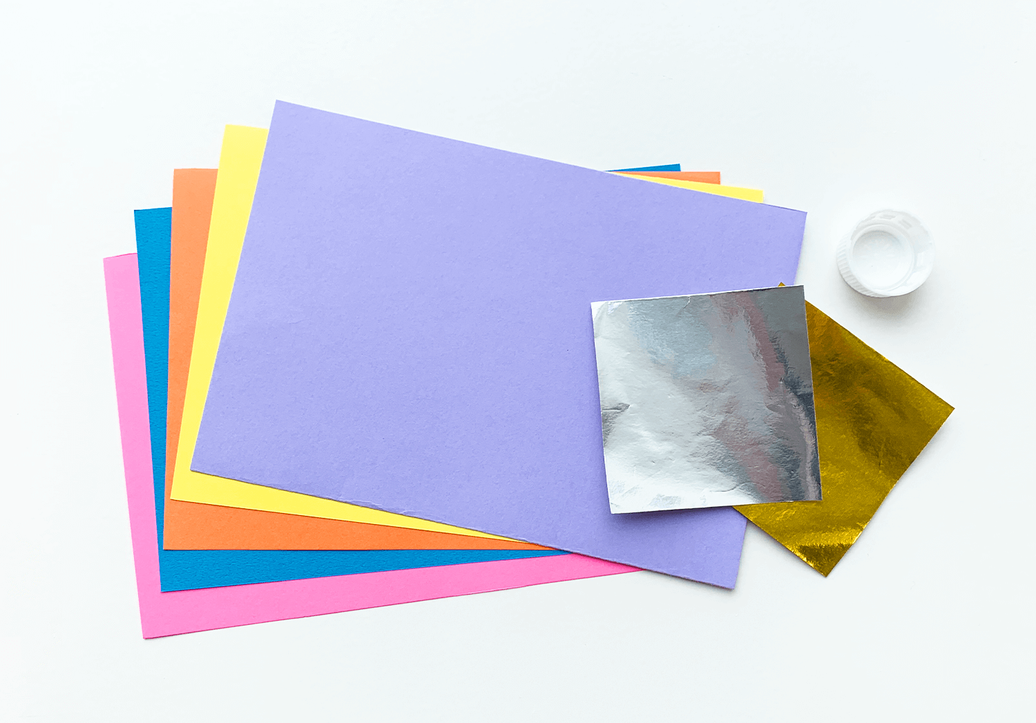 色画用紙(好きな色)・ キラキラのおりがみ(金・銀)・ ペットボトルの蓋