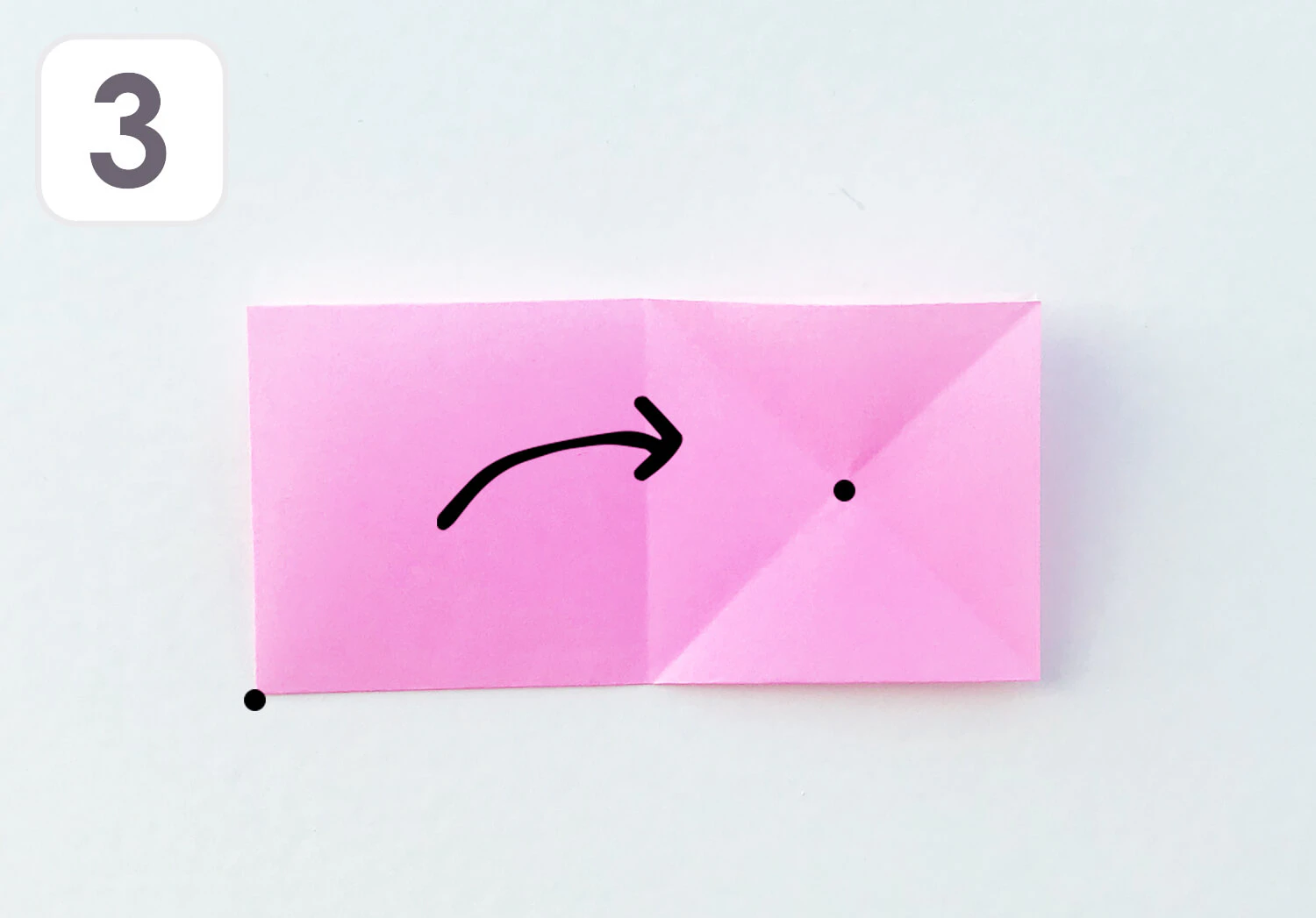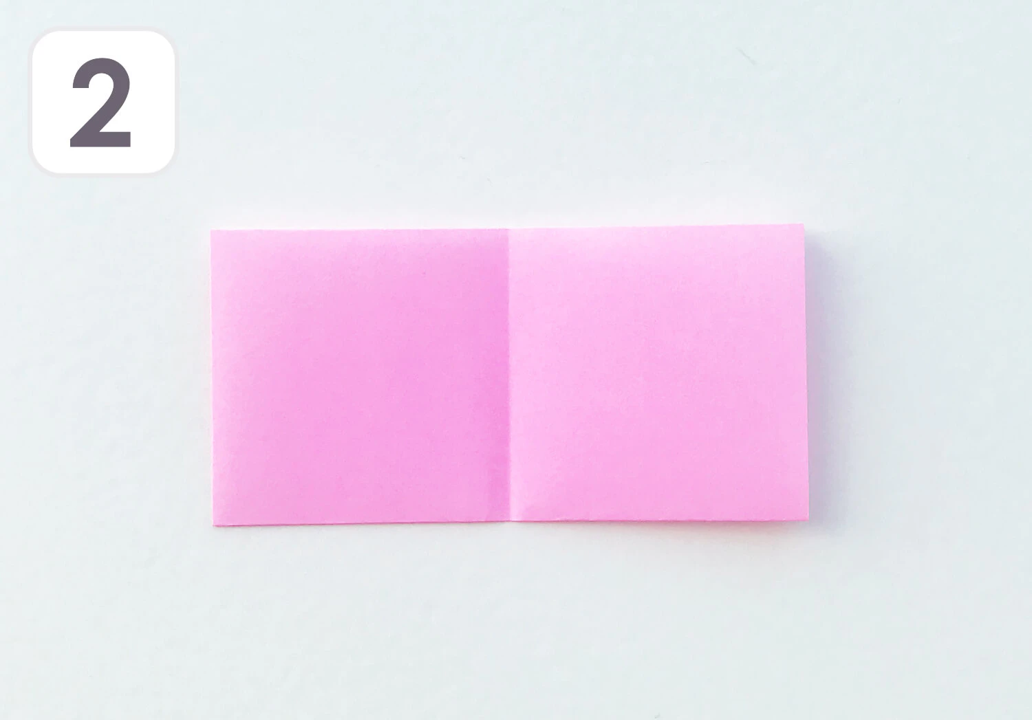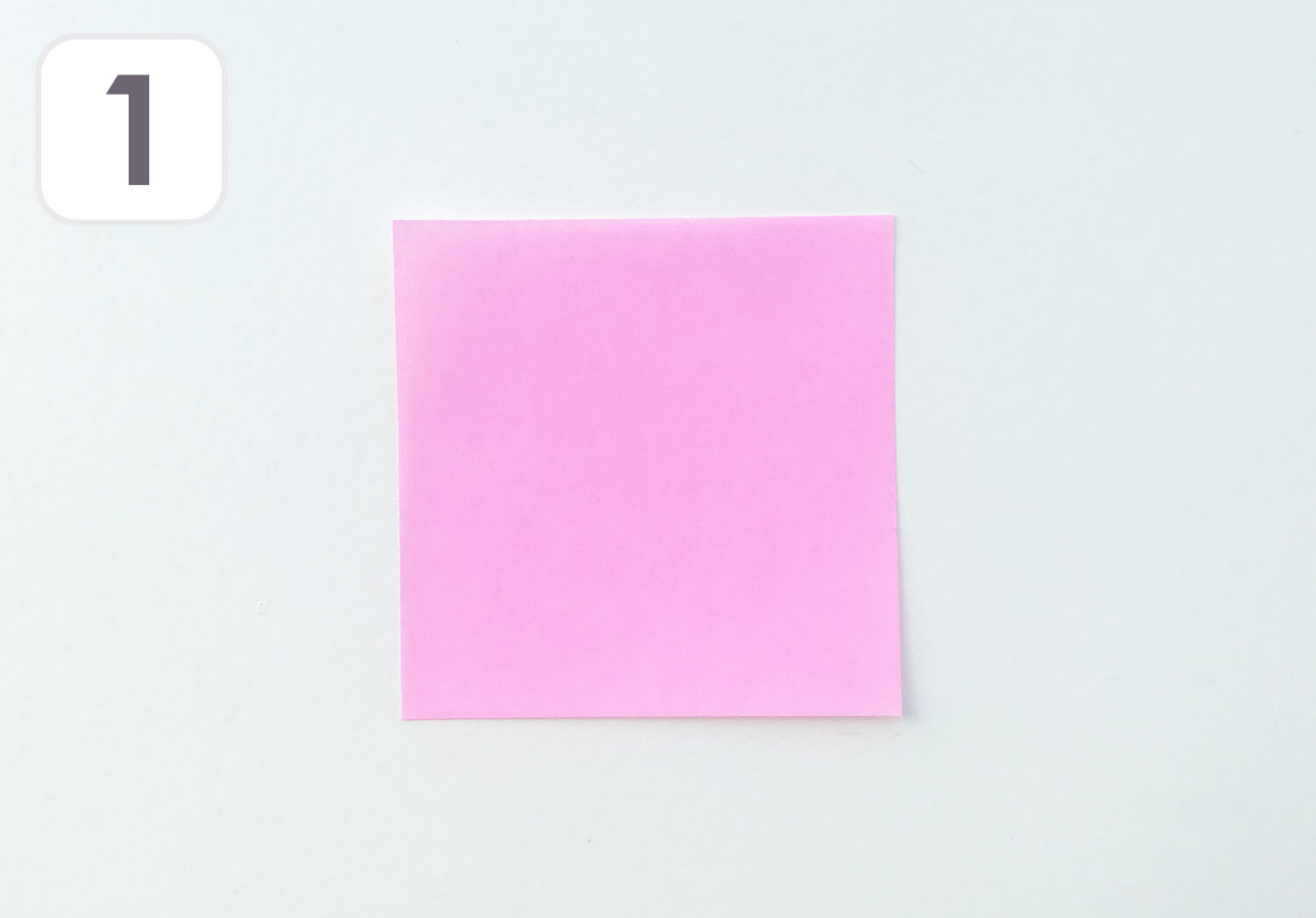 ① ピンクのおりがみを使います。
