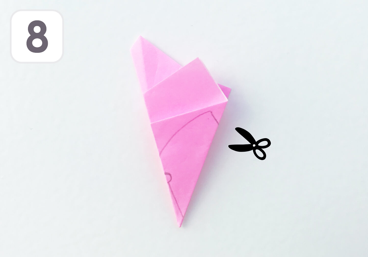 ⑧ 写真のように線を描き、はさみで切ります。