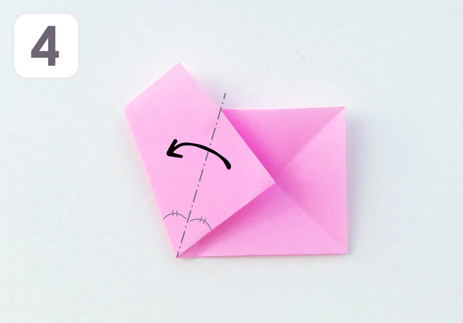 ③ 右半分の四角を三角に折り✖の折り目を付けます。