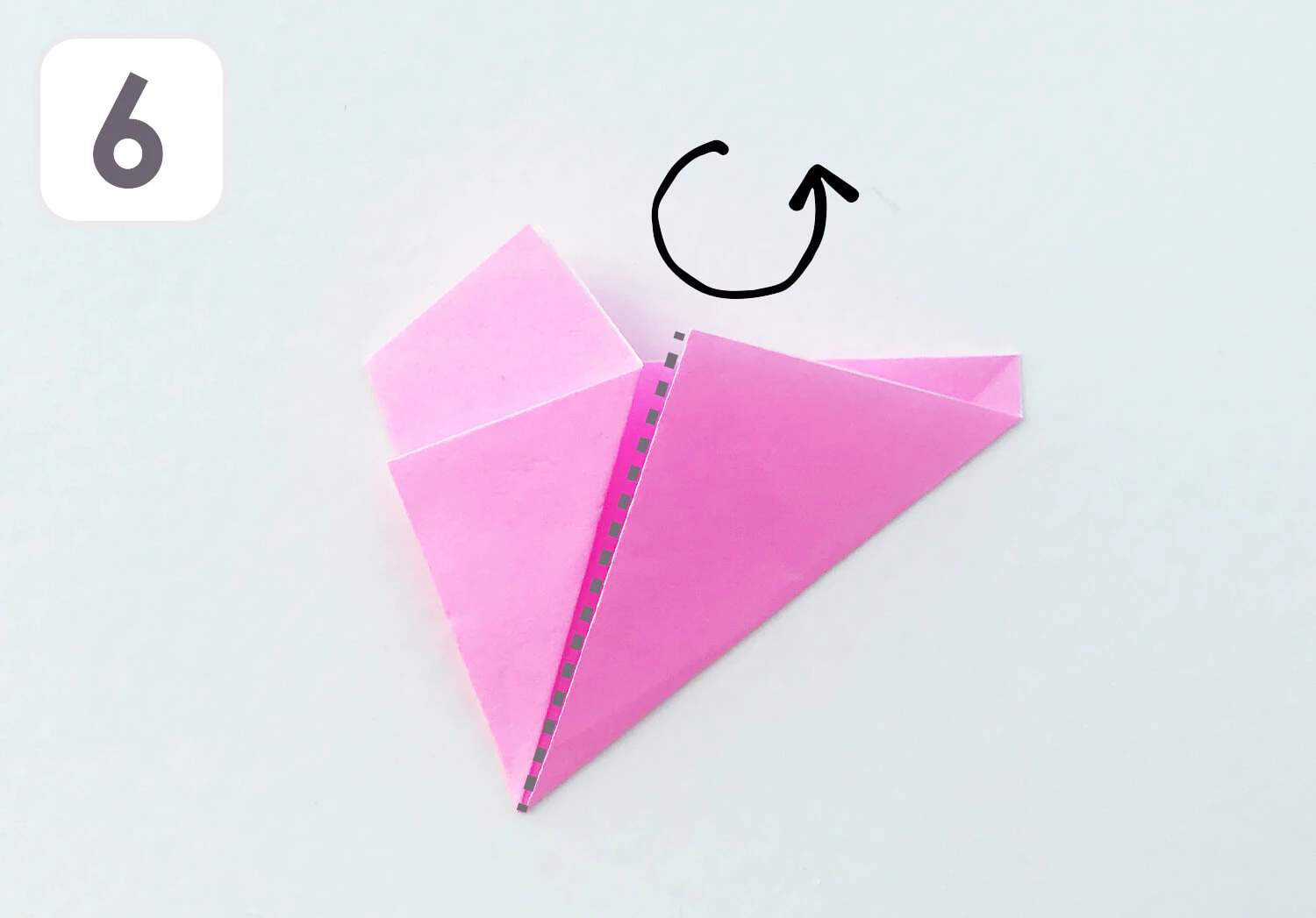 ⑤ 裏返して、点線を折る。