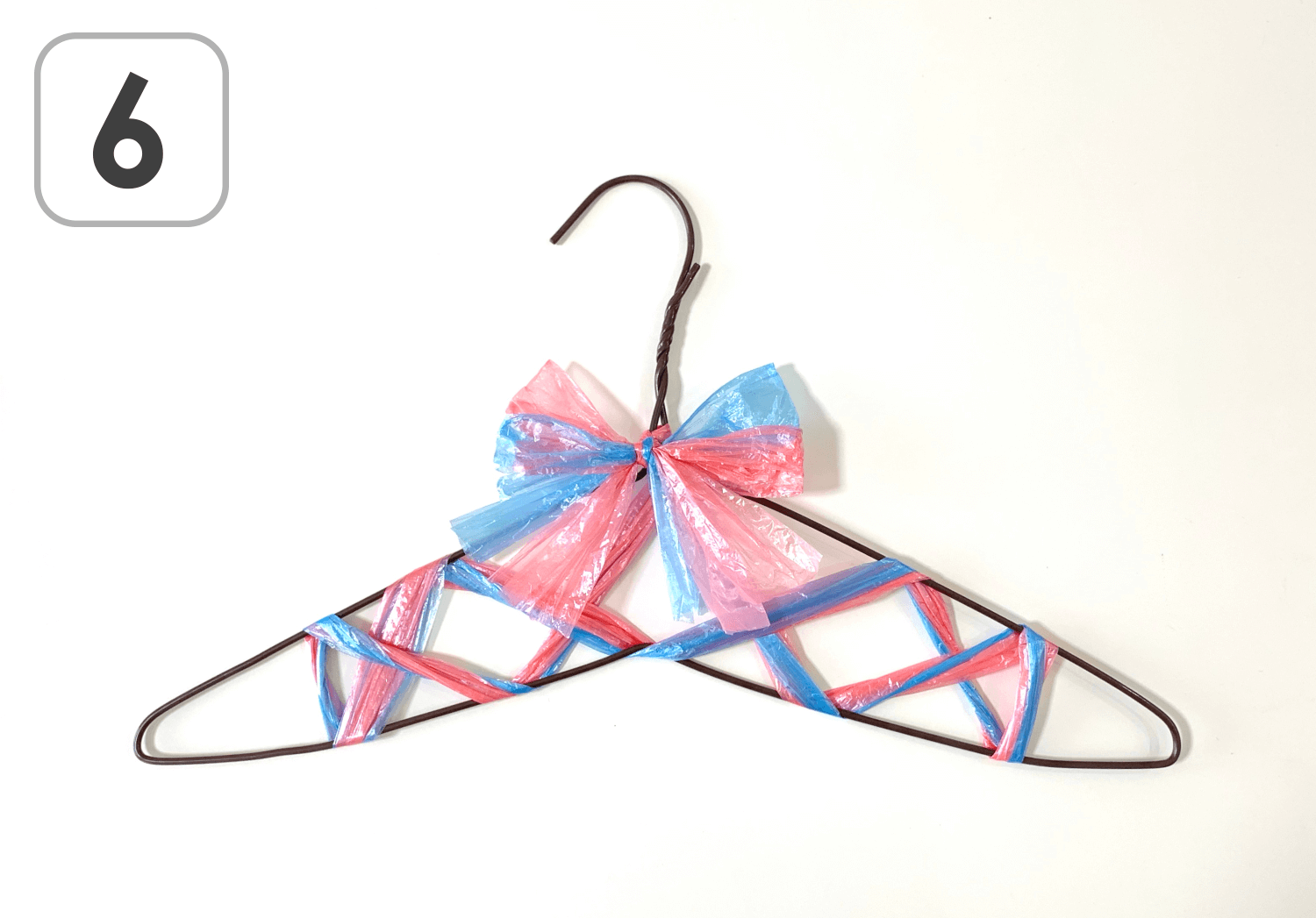 ⑥蝶々結びをします。テープを広げて形を整えましょう。